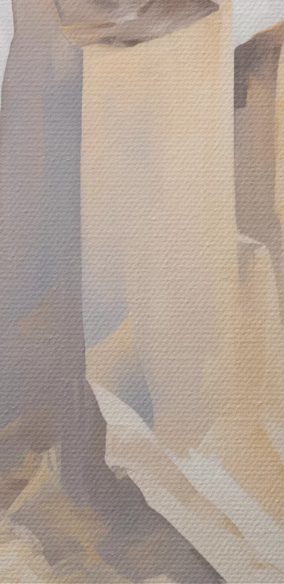 Țesătura fină a firelor de pe această pânză seamănă cu suprafața pânzelor artiștilor profesioniști.