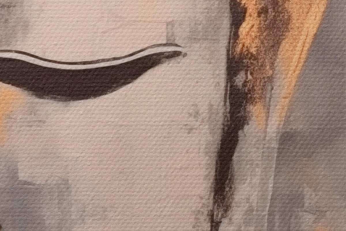 Țesătura fină a firelor de pe această pânză seamănă cu suprafața pânzelor artiștilor profesioniști.