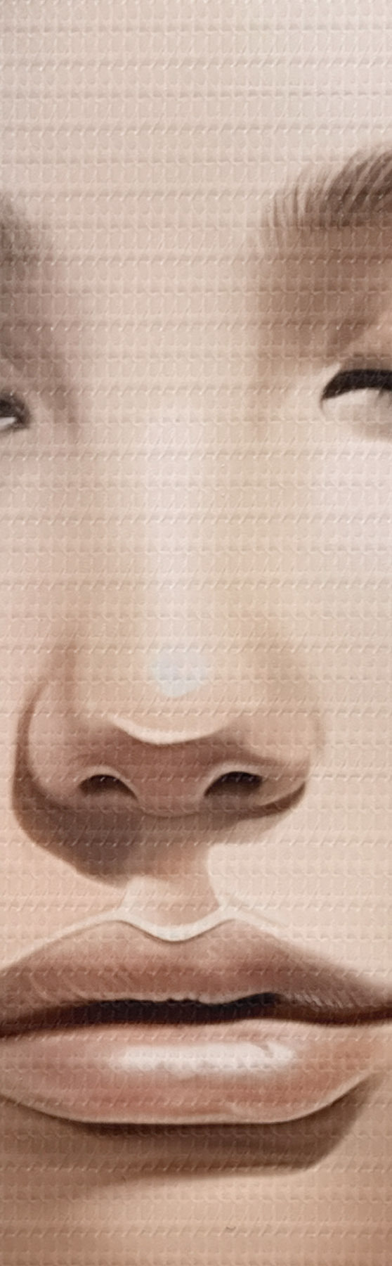 Țesătura fină a firelor de pe această pânză seamănă cu suprafața pânzelor artiștilor profesioniști.