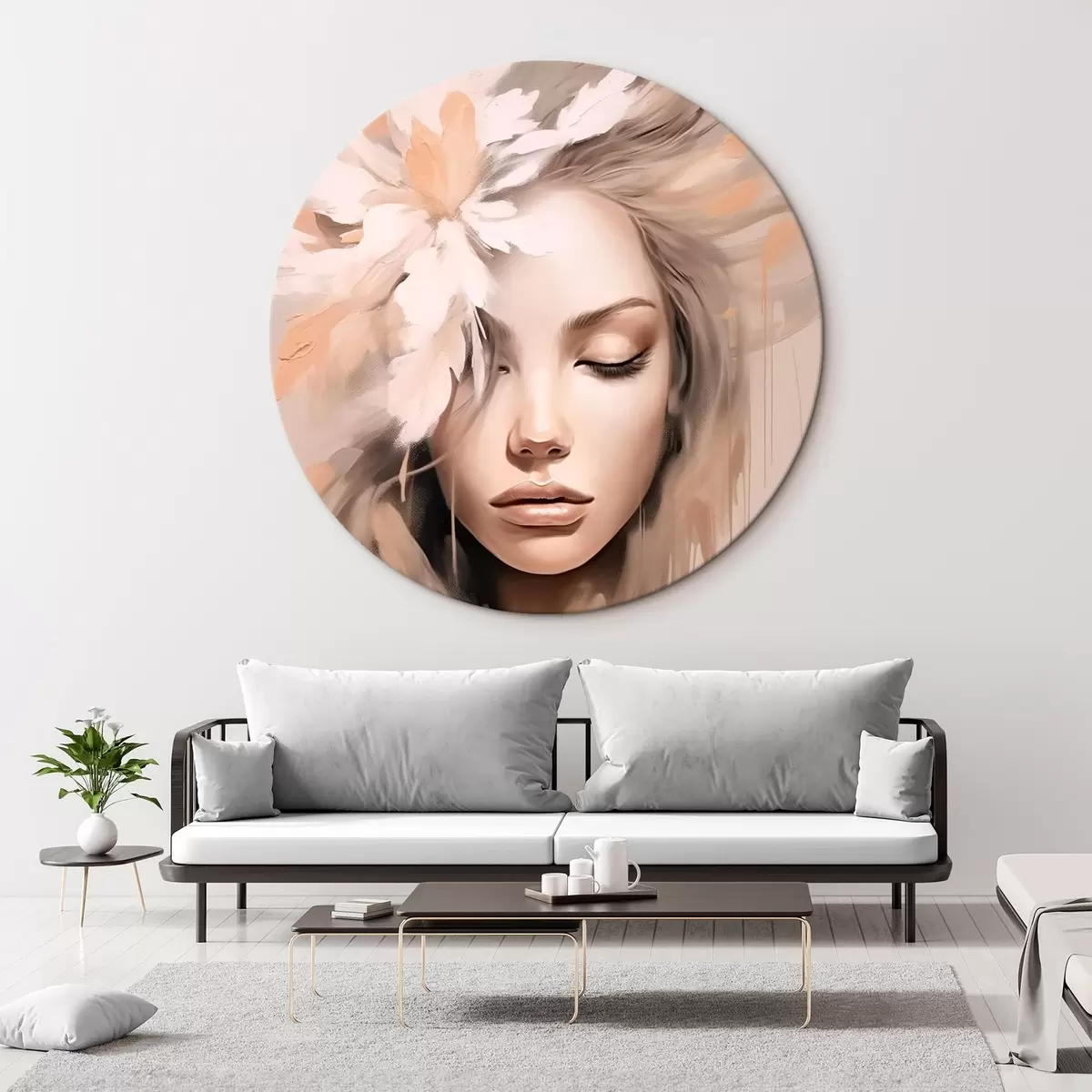 Picturi rotunde Portret feminin cu o floare Nr r46218