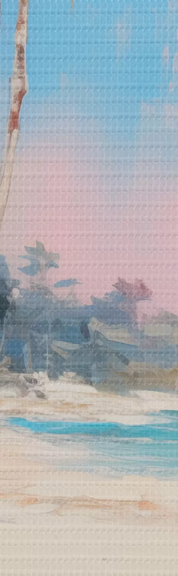 Țesătura fină a firelor de pe această pânză seamănă cu suprafața pânzelor artiștilor profesioniști.