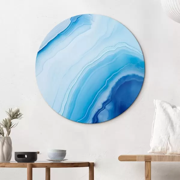 Picturi rotunde Imprimare abstractă albastră și albă cu agate, linii și gradienturi învolburate, textură netedă, artă modernă, minimalistă r46290
