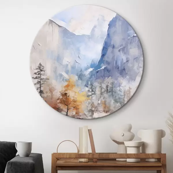 Picturi rotunde Peisaj abstract cu pădure în fața munților Nr r46298
