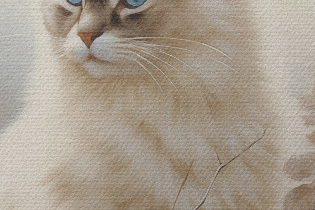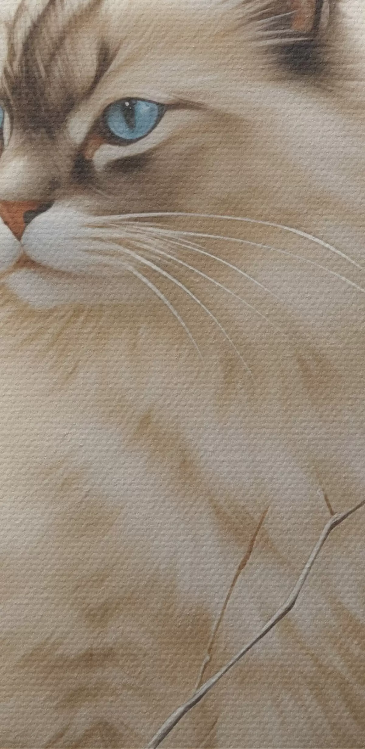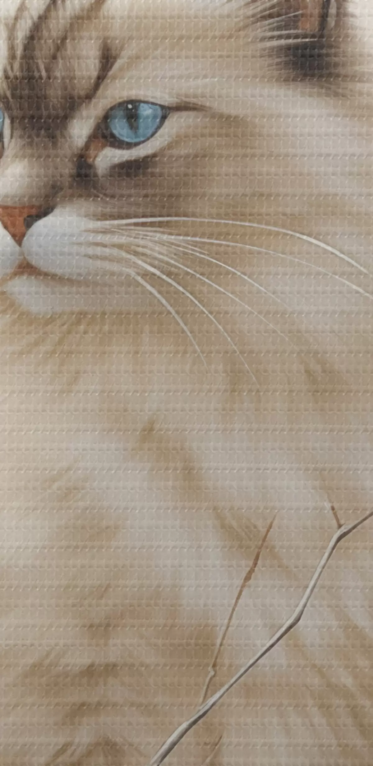 Țesătura fină a firelor de pe această pânză seamănă cu suprafața pânzelor artiștilor profesioniști.