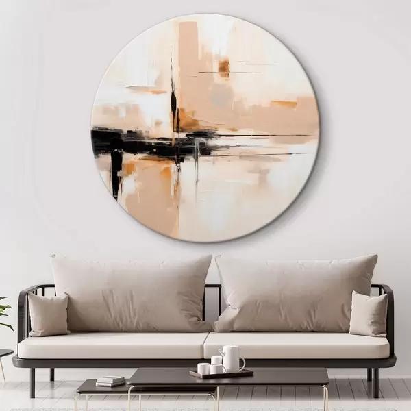 Picturi rotunde Bej și negru, abstracție verticală în stil minimalist r46326