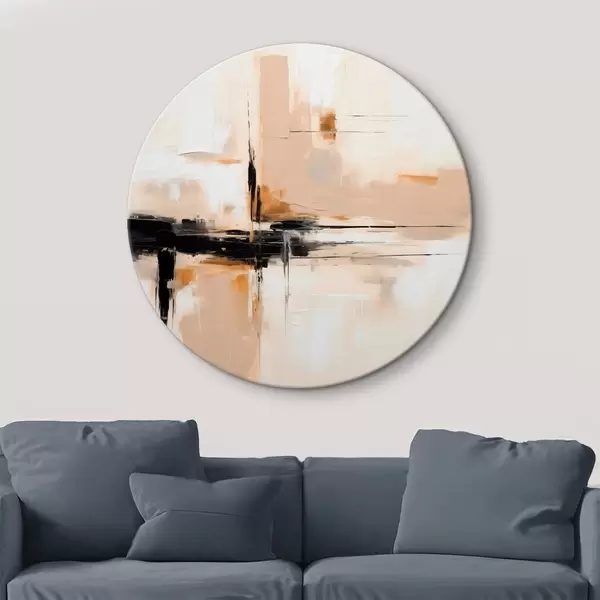 Picturi rotunde Bej și negru, abstracție verticală în stil minimalist r46326
