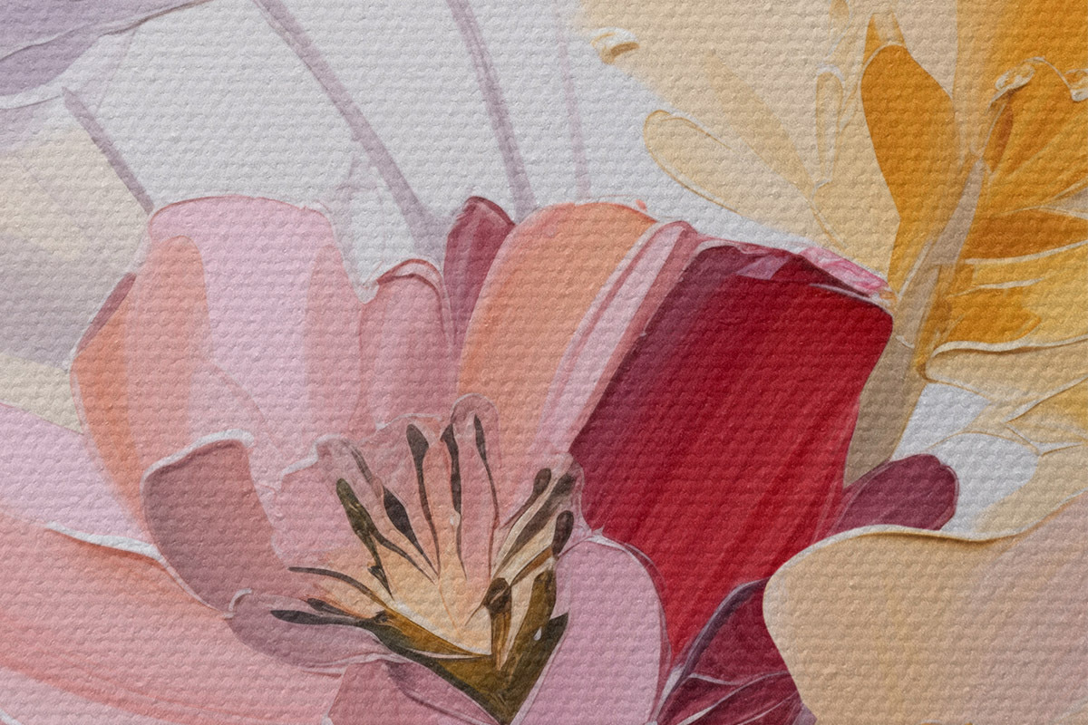 Trei tipuri de materiale sunt disponibile pentru comandă: Economic Canvas - un material dens și durabil pentru imprimarea digitală, identic cu pânza de pictor, suprafață impermeabilă, reproducere realistă a detaliilor, material cu granulație medie. Premium Canvas - textura seamănă cu cea a pânzei unui pictor (fire mici împletite). Reproducere moale, detaliată a imaginii pe o suprafață mată. Eco-Premium - țesătură 100% bumbac de înaltă calitate. Datorită fibrelor naturale de bumbac, materialul este durabil și rezistent la uzură. Reproducere excelentă a culorilor și a detaliilor.