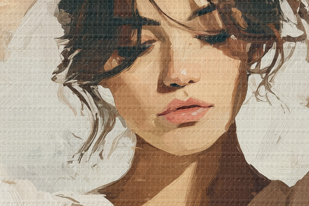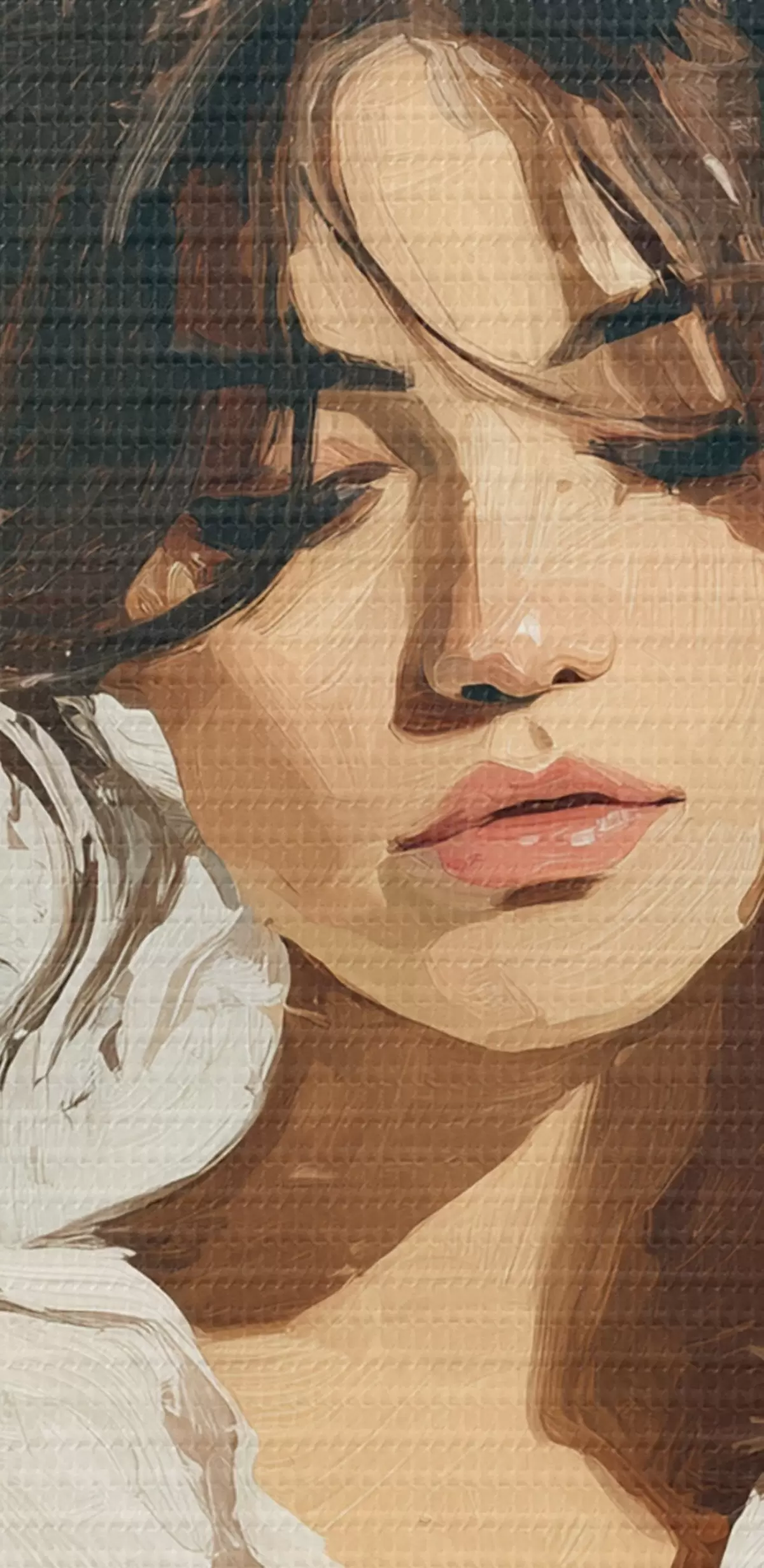 Trei tipuri de materiale sunt disponibile pentru comandă: Economic Canvas - un material dens și durabil pentru imprimarea digitală, identic cu pânza de pictor, suprafață impermeabilă, reproducere realistă a detaliilor, material cu granulație medie. Premium Canvas - textura seamănă cu cea a pânzei unui pictor (fire mici împletite). Reproducere moale, detaliată a imaginii pe o suprafață mată. Eco-Premium - țesătură 100% bumbac de înaltă calitate. Datorită fibrelor naturale de bumbac, materialul este durabil și rezistent la uzură. Reproducere excelentă a culorilor și a detaliilor.