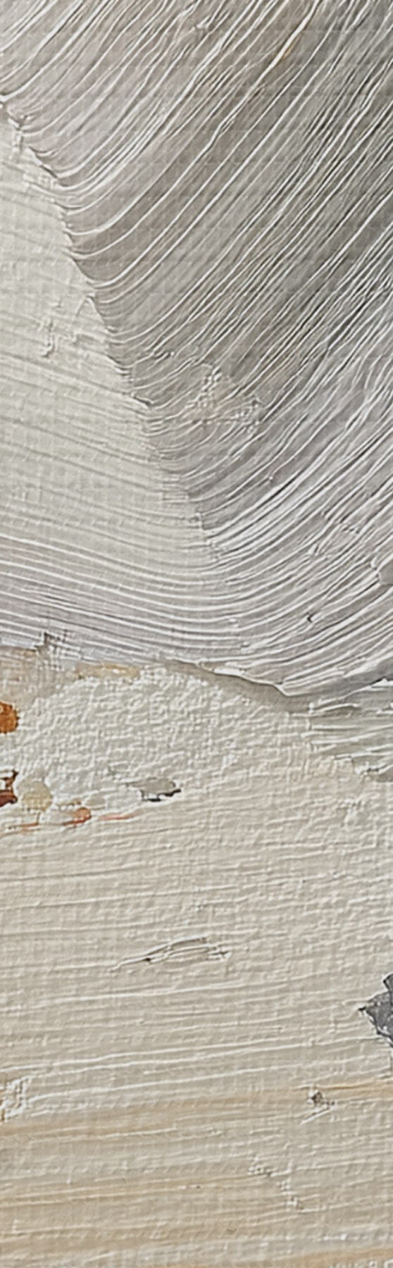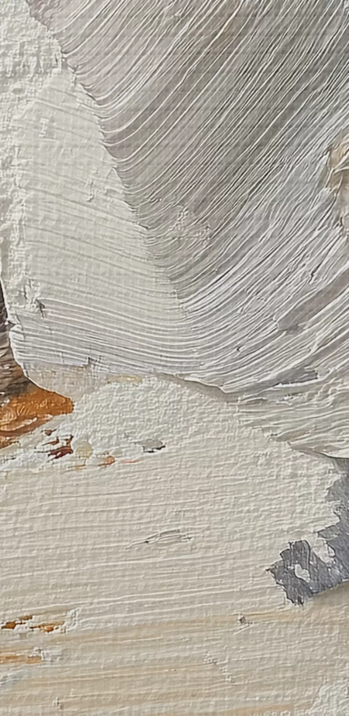 Țesătura fină a firelor de pe această pânză seamănă cu suprafața pânzelor artiștilor profesioniști.