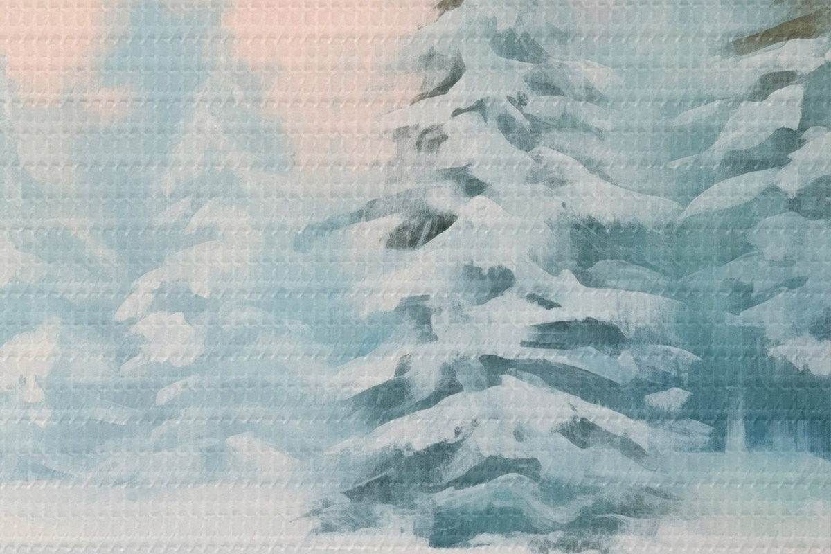 Țesătura fină a firelor de pe această pânză seamănă cu suprafața pânzelor artiștilor profesioniști.