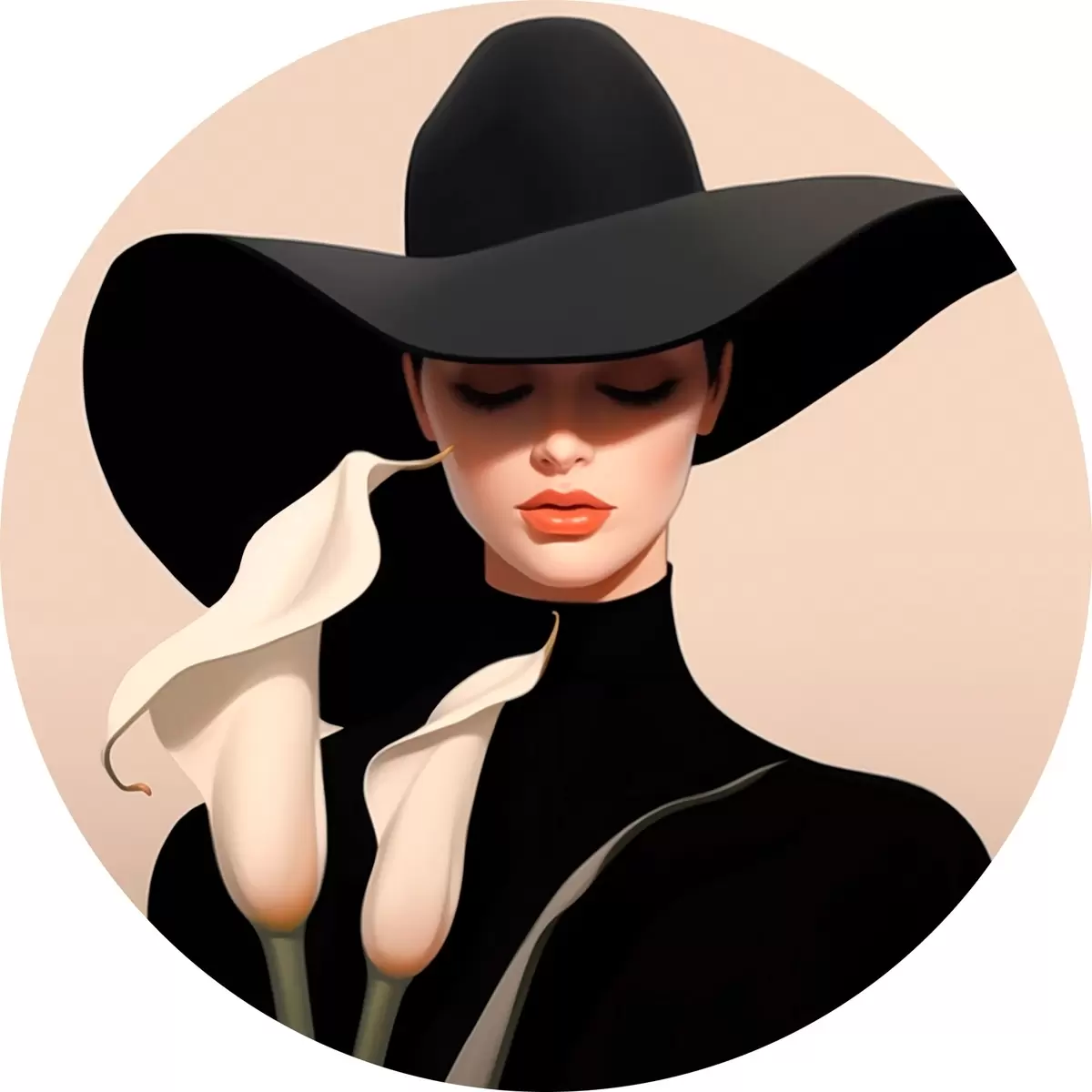 Picturi rotunde Fată cu pălărie și calas Nr r46420