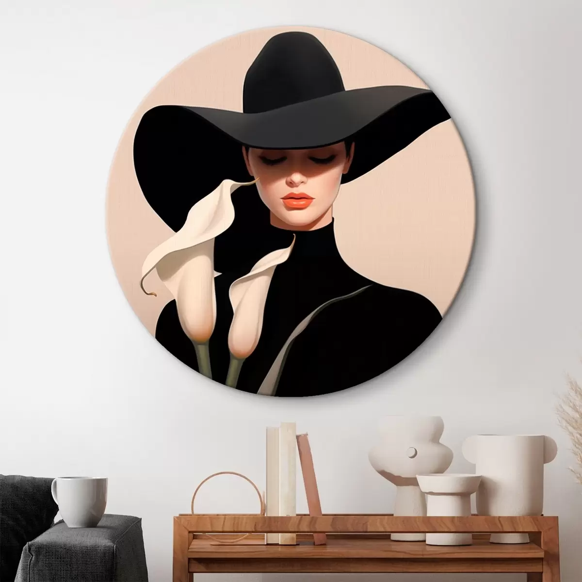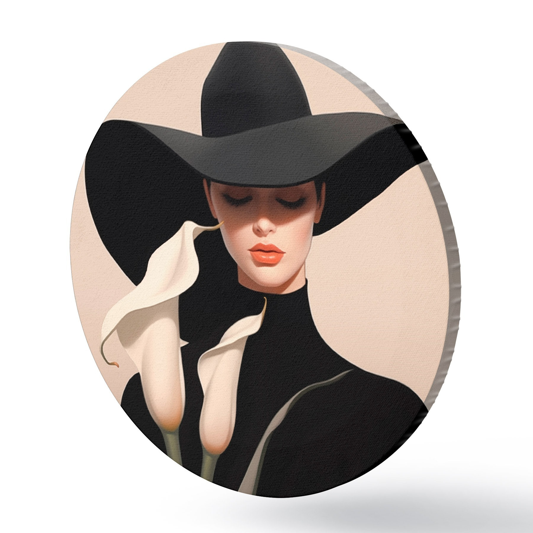 Picturi rotunde Fată cu pălărie și calas r46420