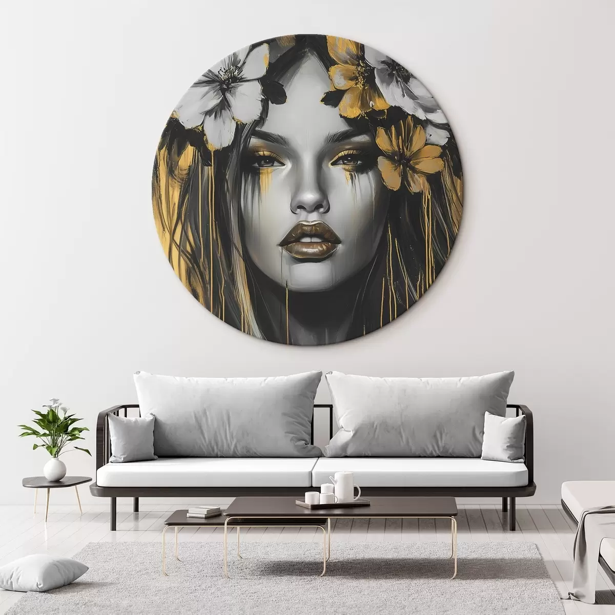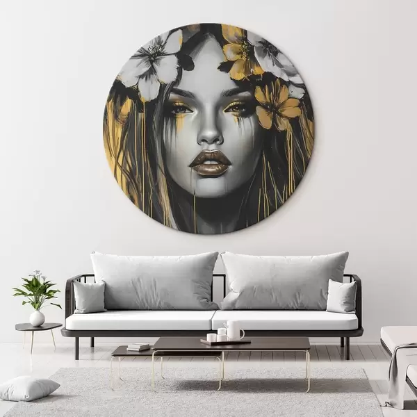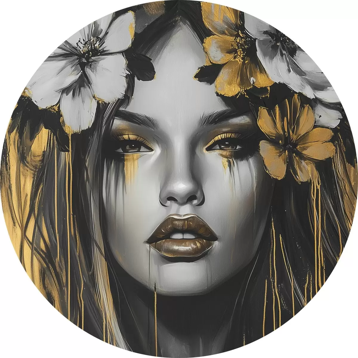 Picturi rotunde Portret abstract al unei femei cu flori Nr r46454