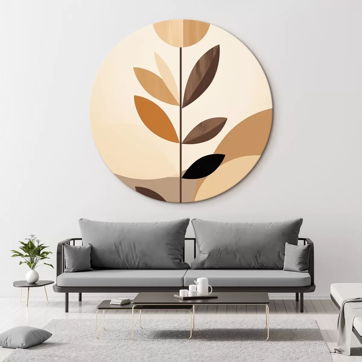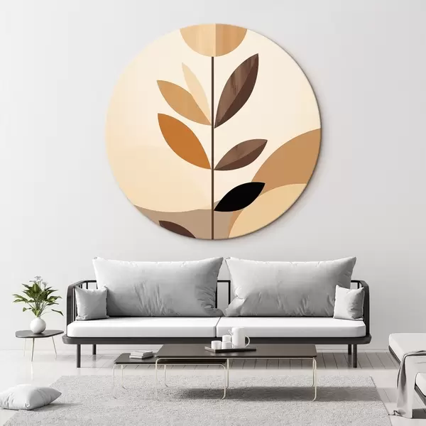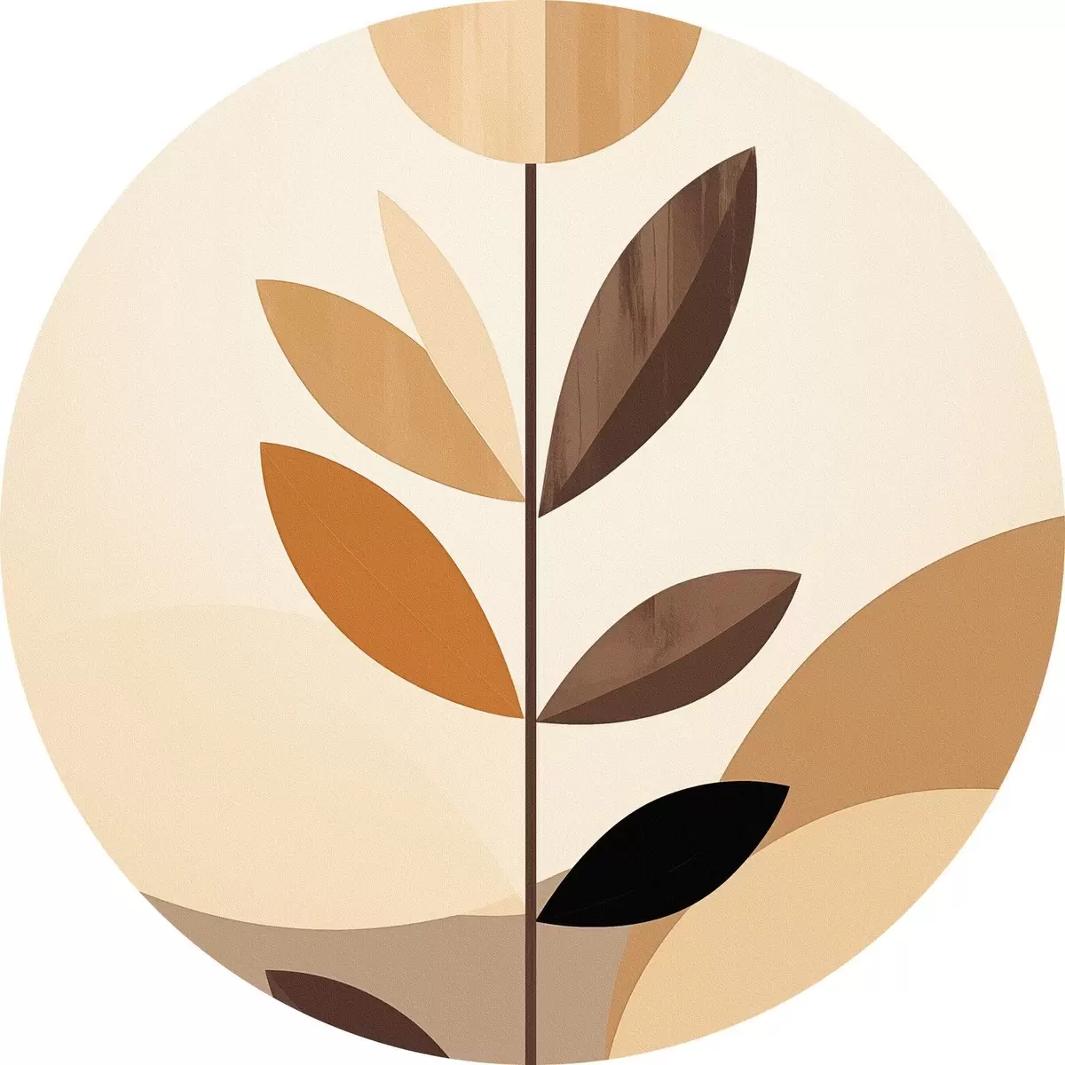 Picturi rotunde Floare stilizată cu frunze geometrice în tonuri calde r46500