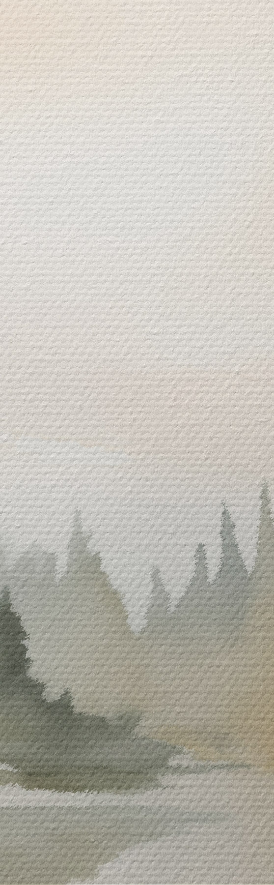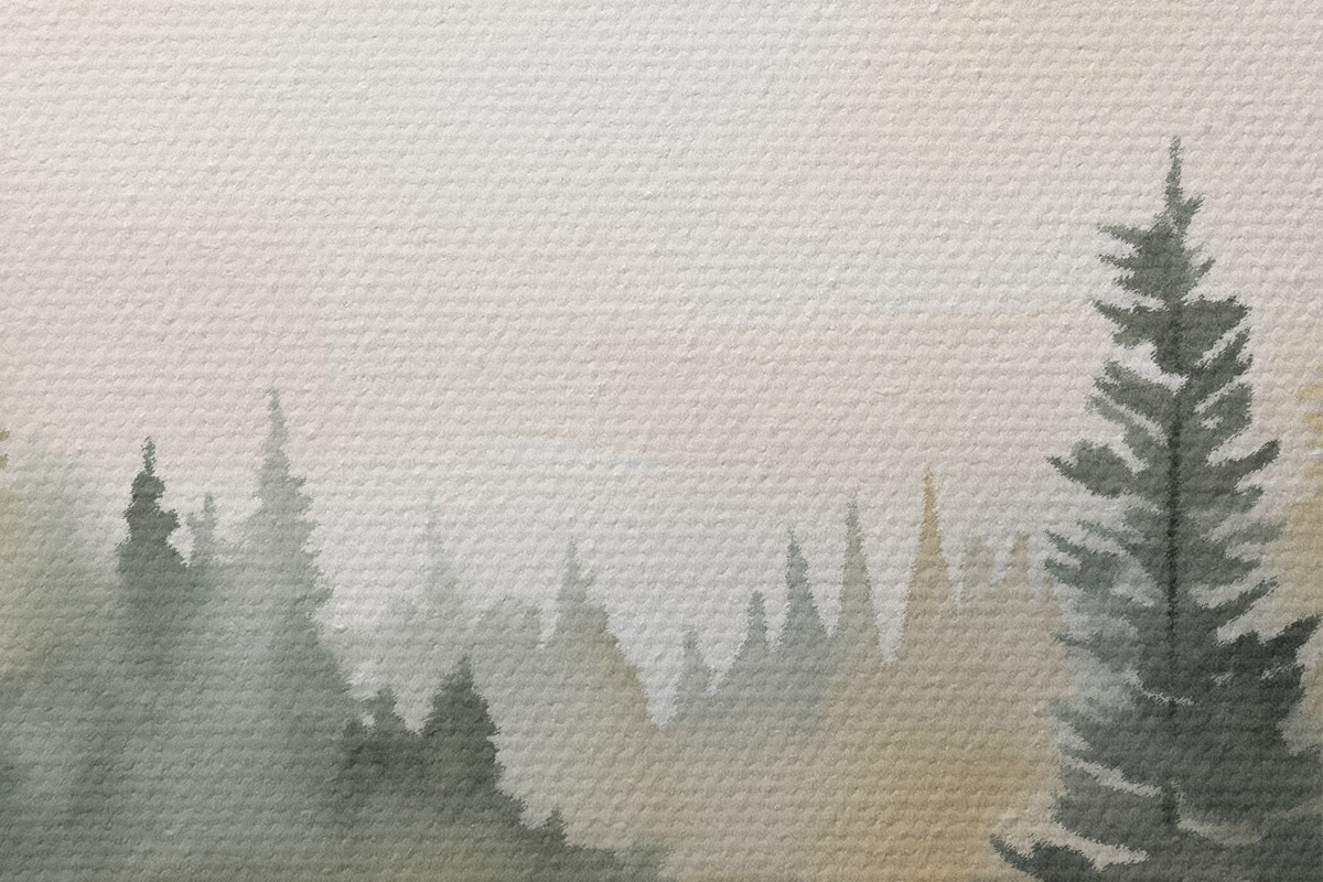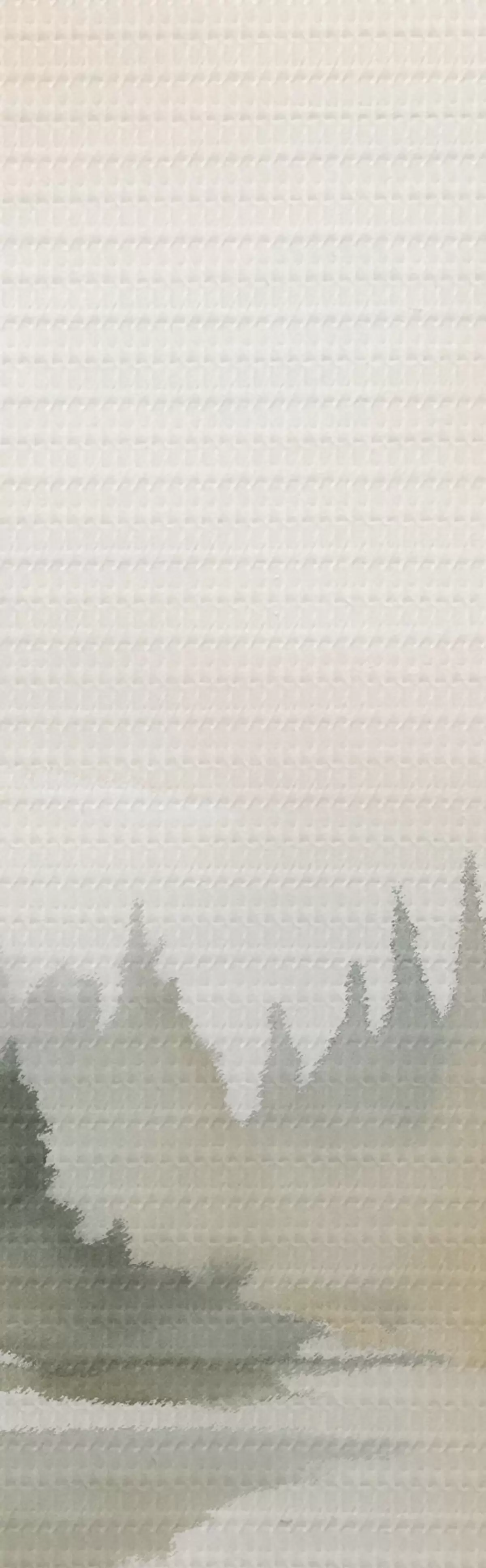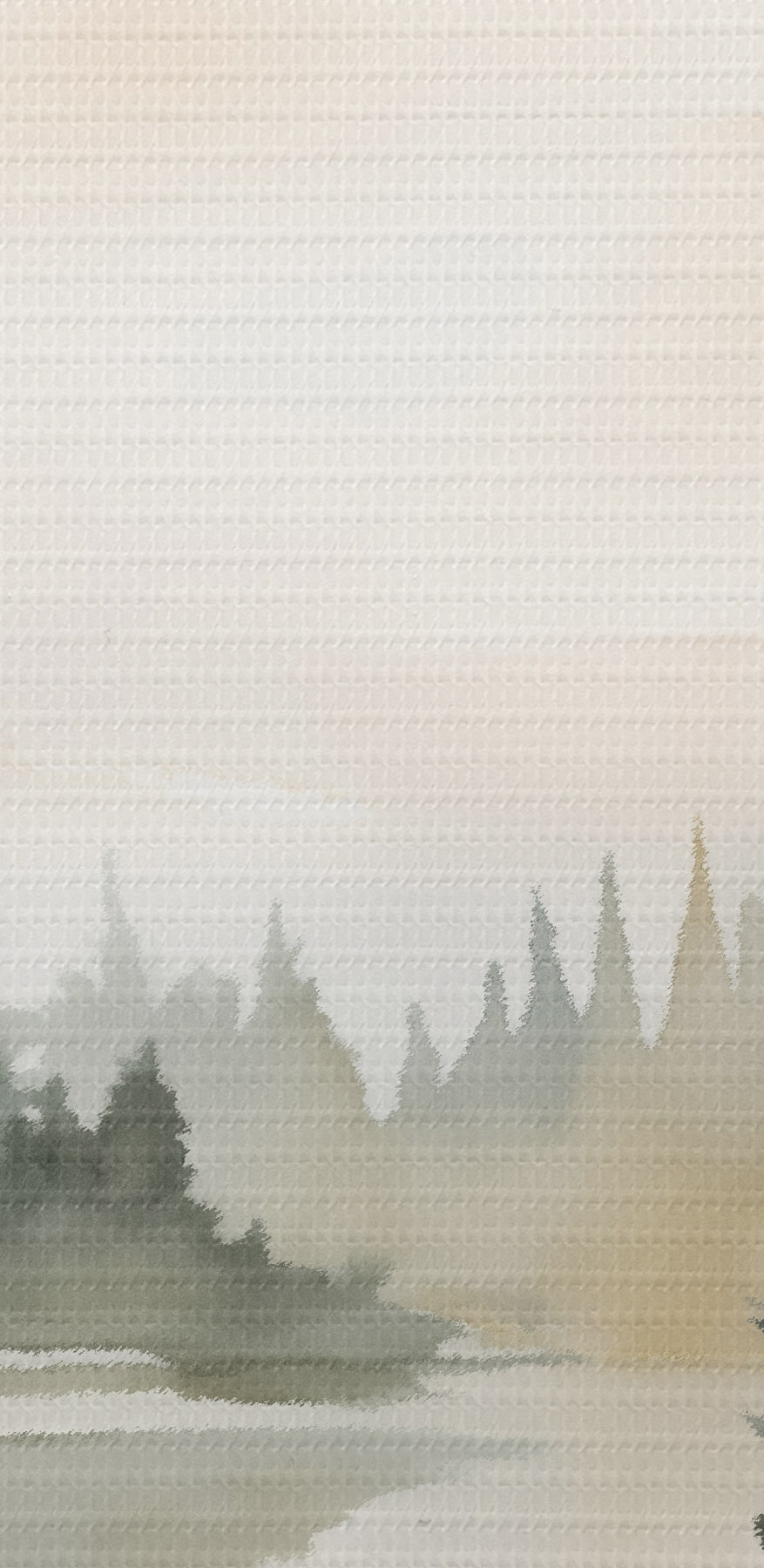 Picturi rotunde Pădure de conifere ceață peste râul calm, stil acuarelă Nr r46507