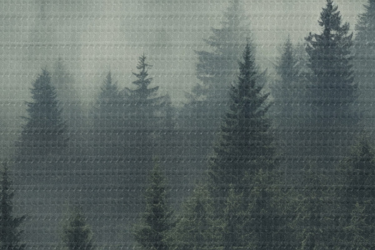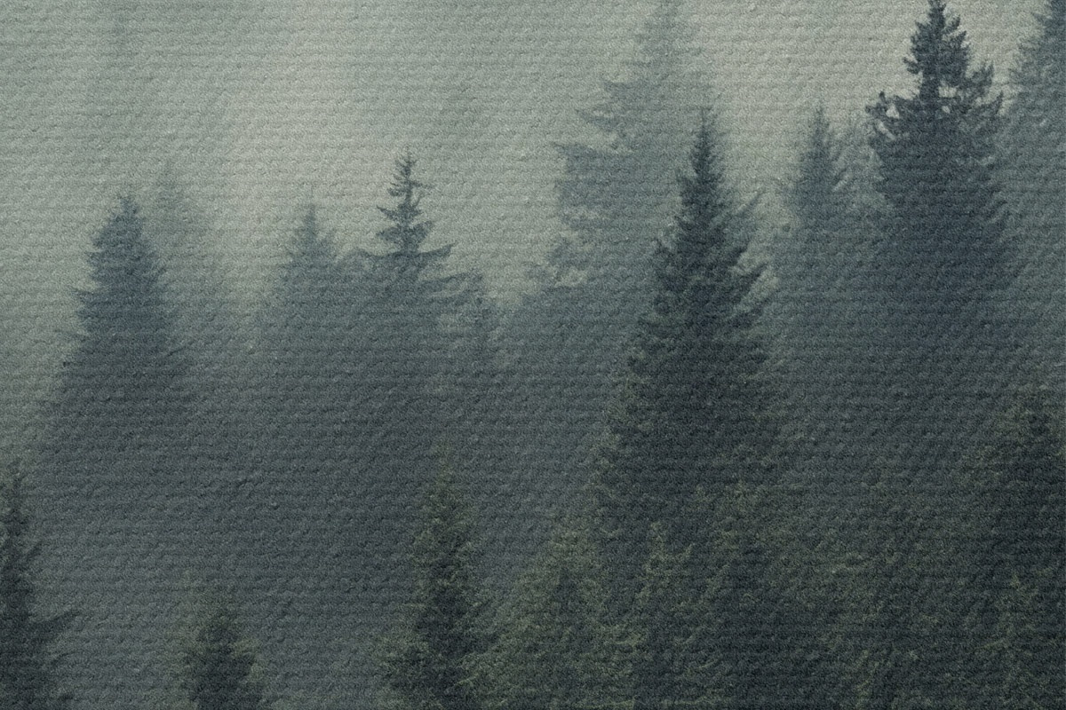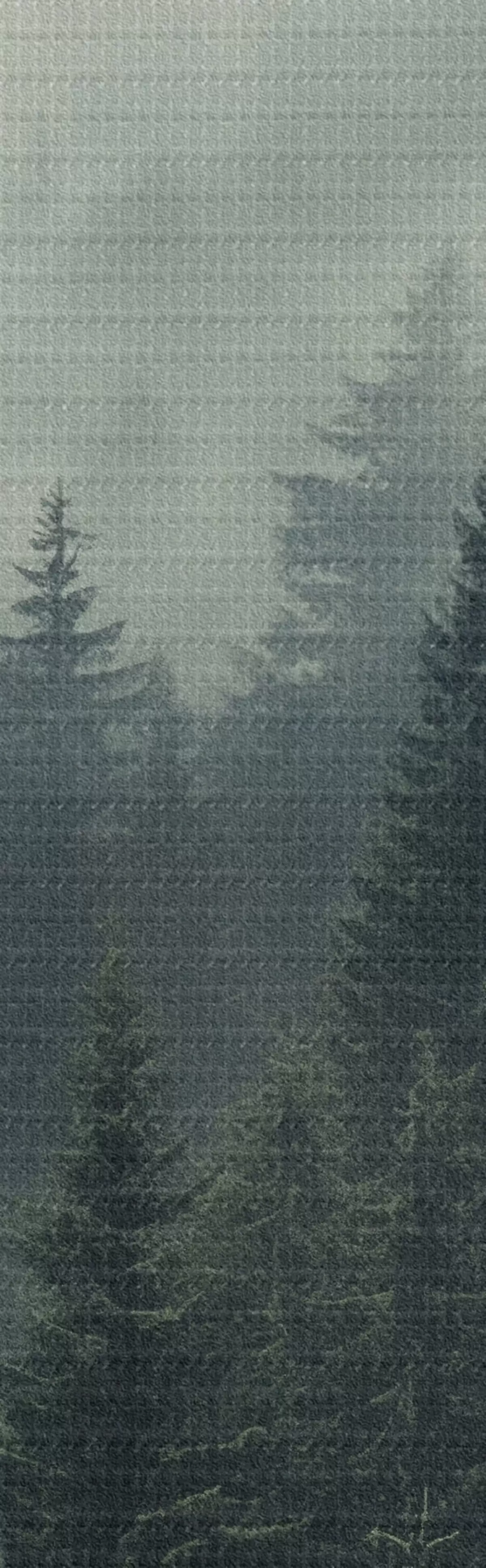 Picturi rotunde Ceață care se rostogolește peste pădurea densă de conifere Nr r46512