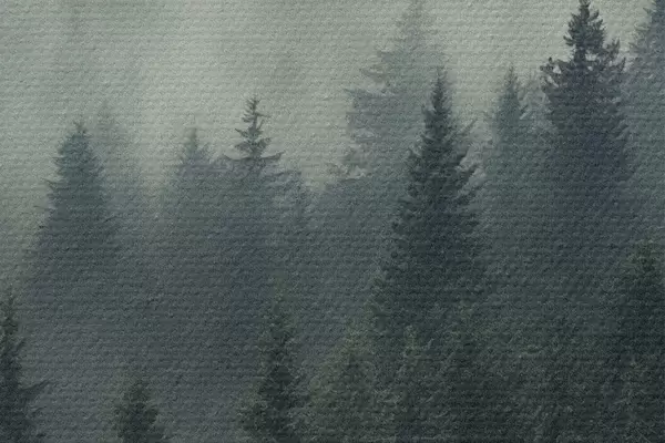 Picturi rotunde Ceață care se rostogolește peste pădurea densă de conifere Nr r46512