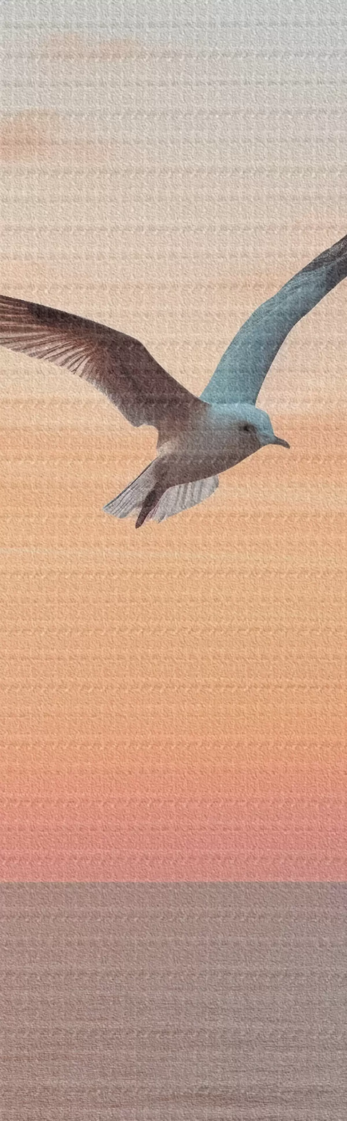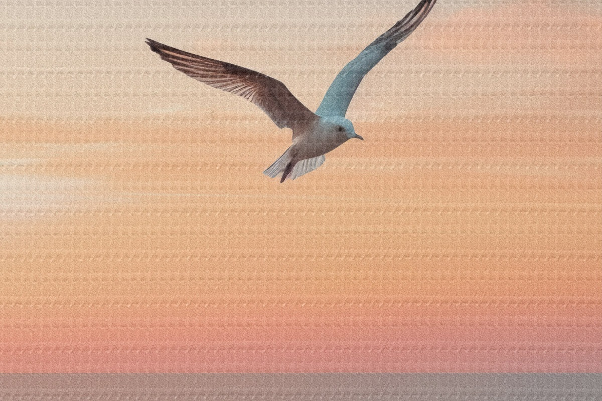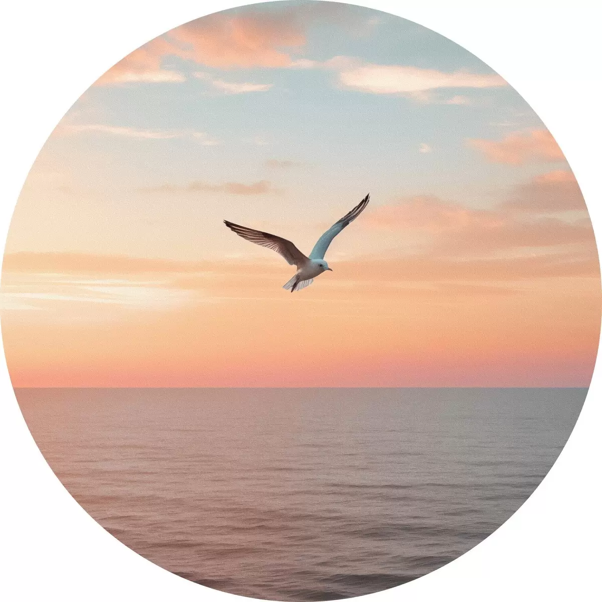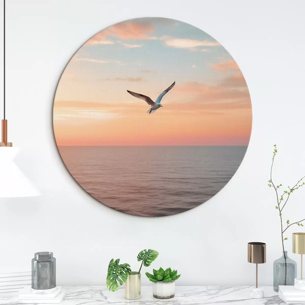 Picturi rotunde Pescăruș deasupra mării la un apus roz-piersic Nr r46520