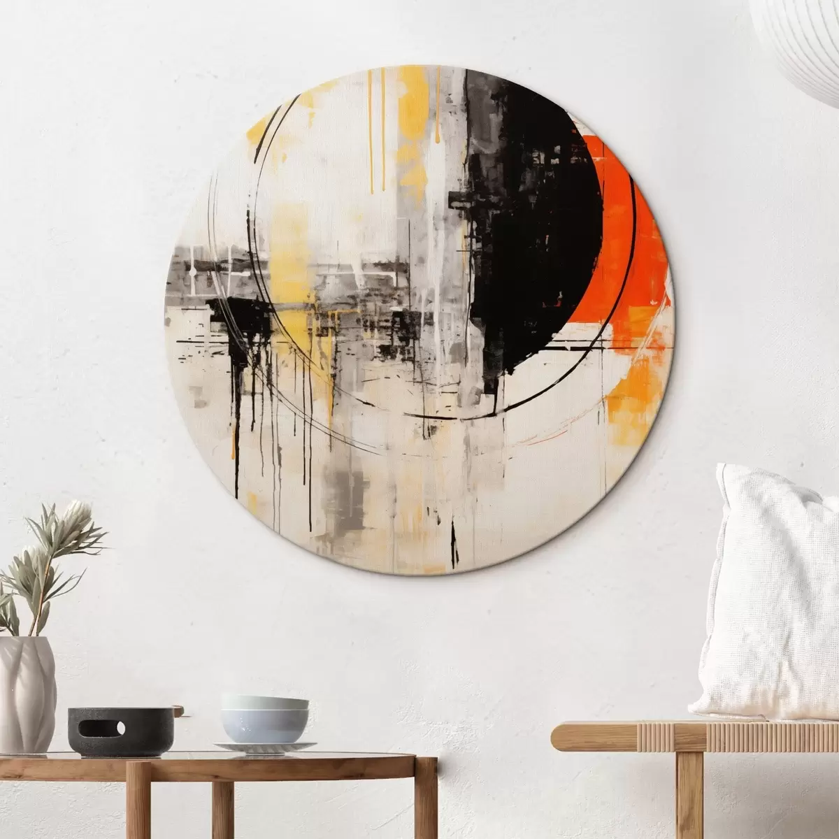 Picturi rotunde Cerc monocromatic portocaliu cu picături texturate r46536