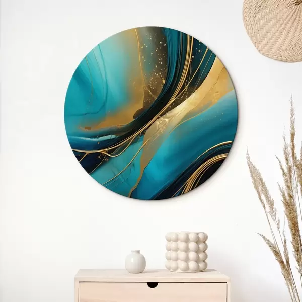 Picturi rotunde Curgere turcoaz cu fire subțiri de ocru r46543