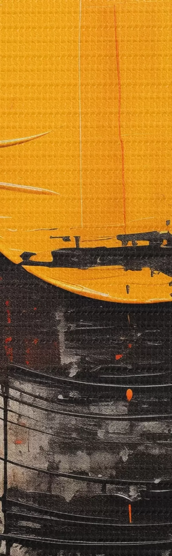 Picturi rotunde Disc portocaliu în interiorul unui inel negru, linii și pete r46550