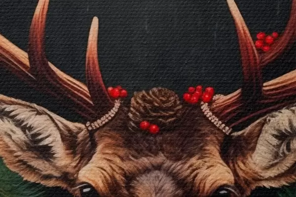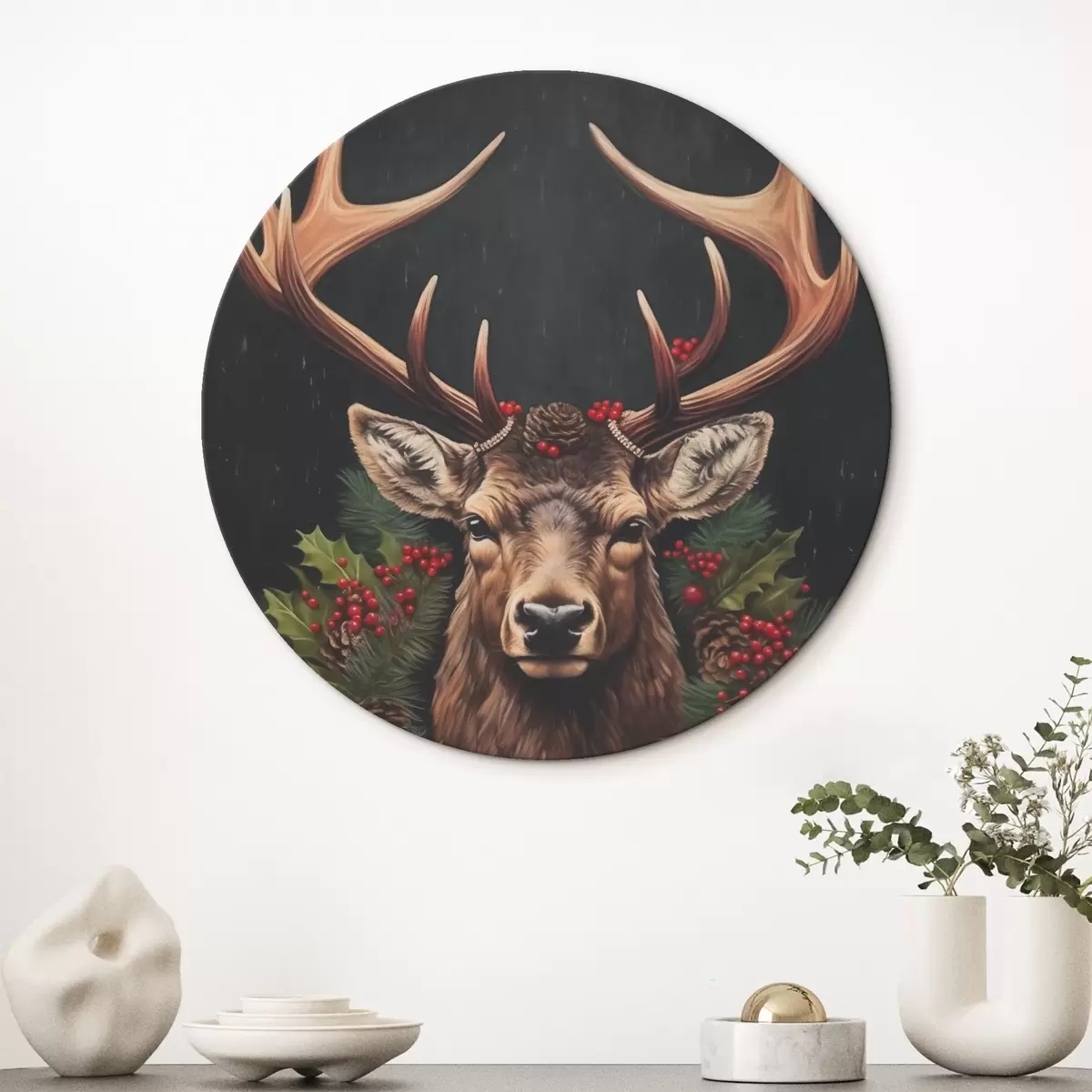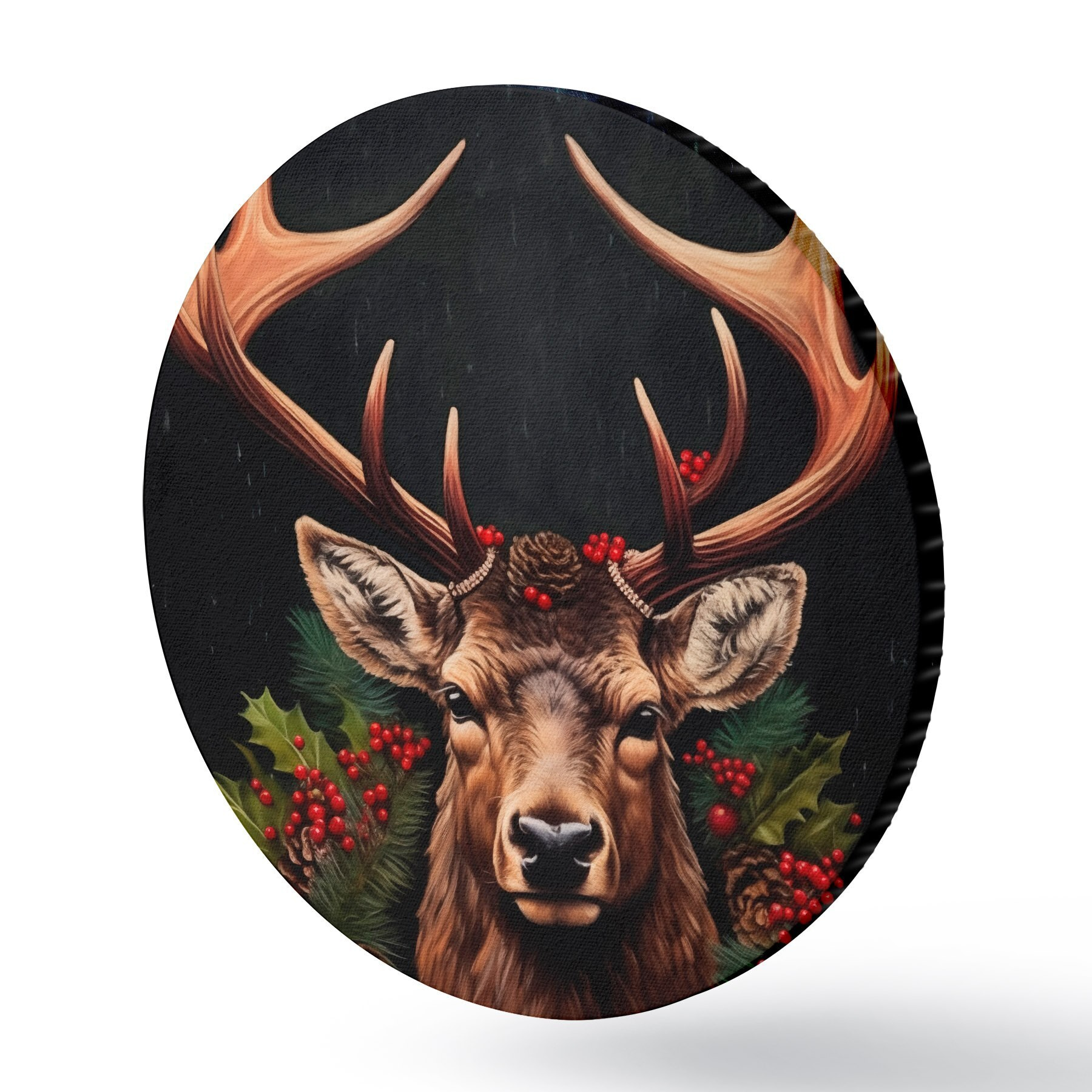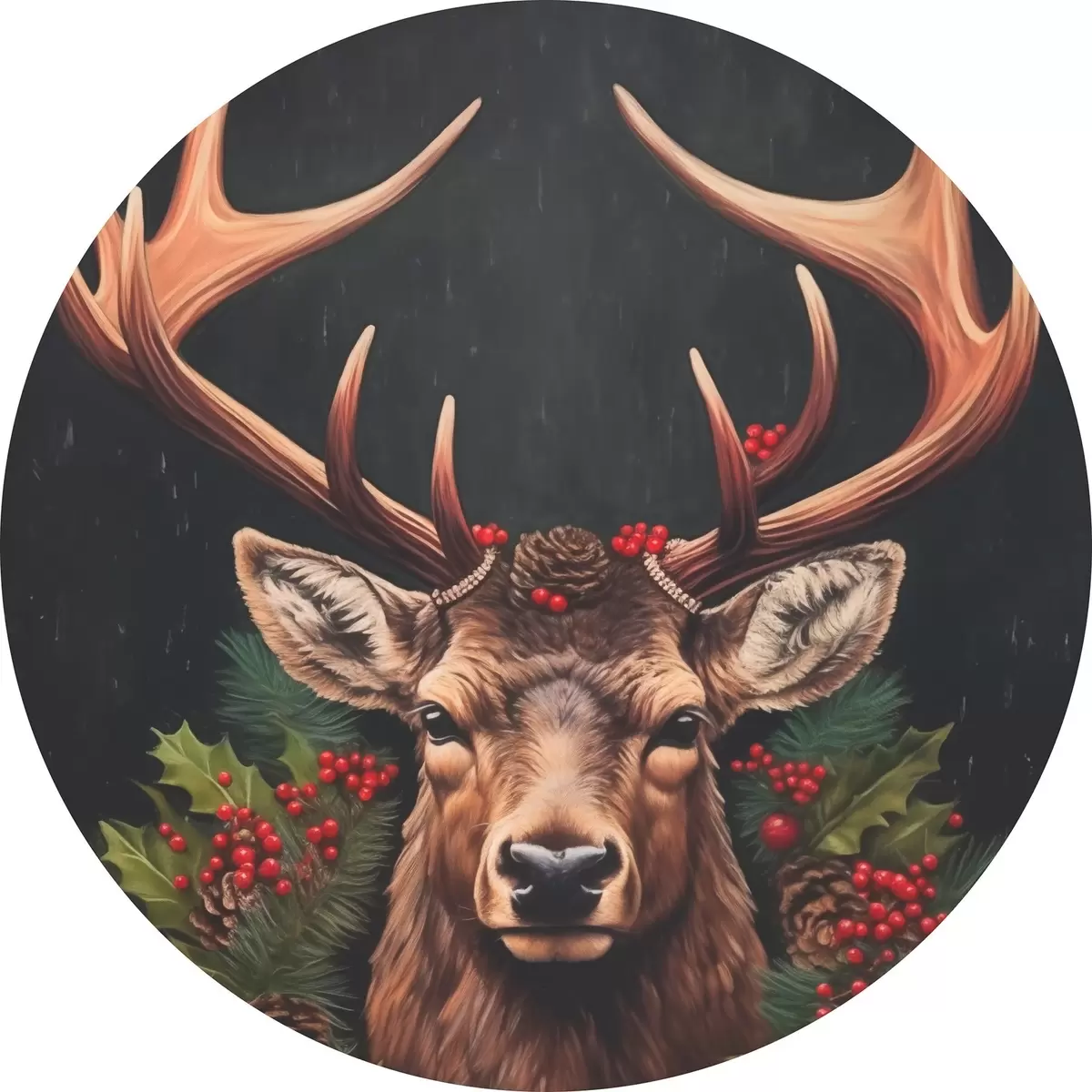Picturi rotunde Portretul unui cerb cu o coroană de Crăciun Nr r46628