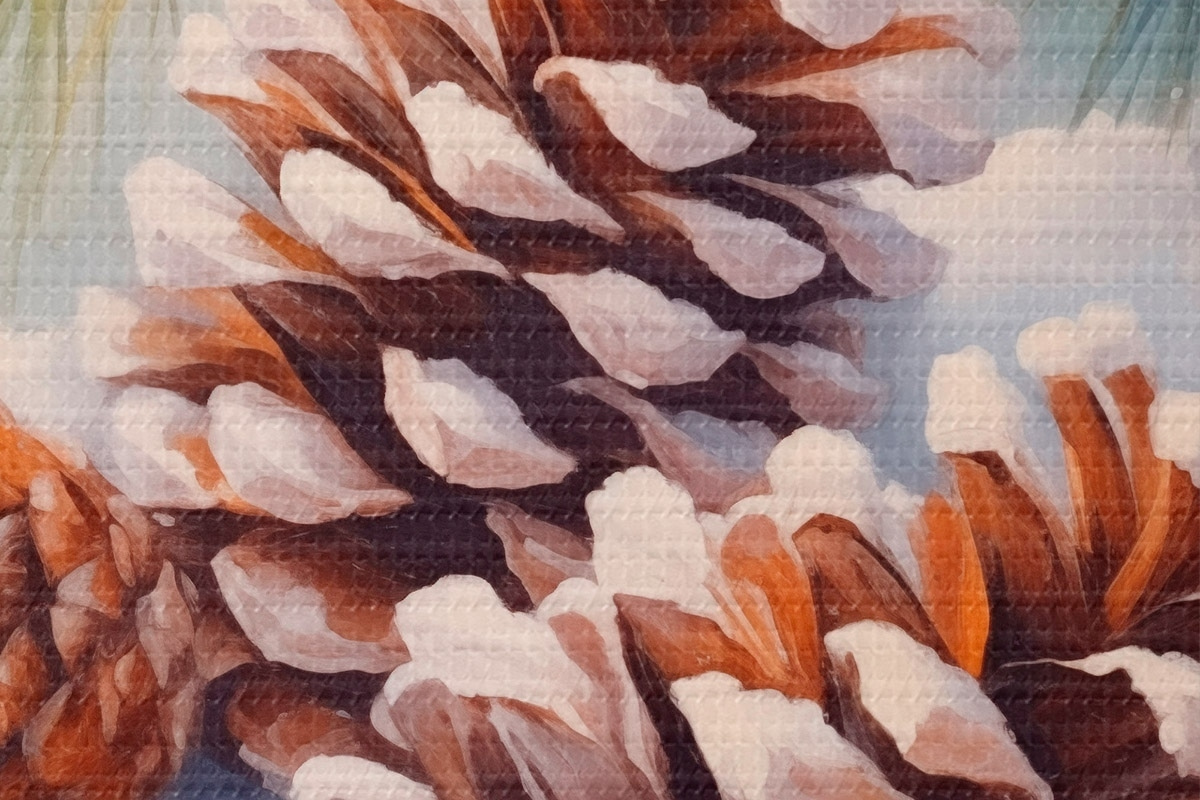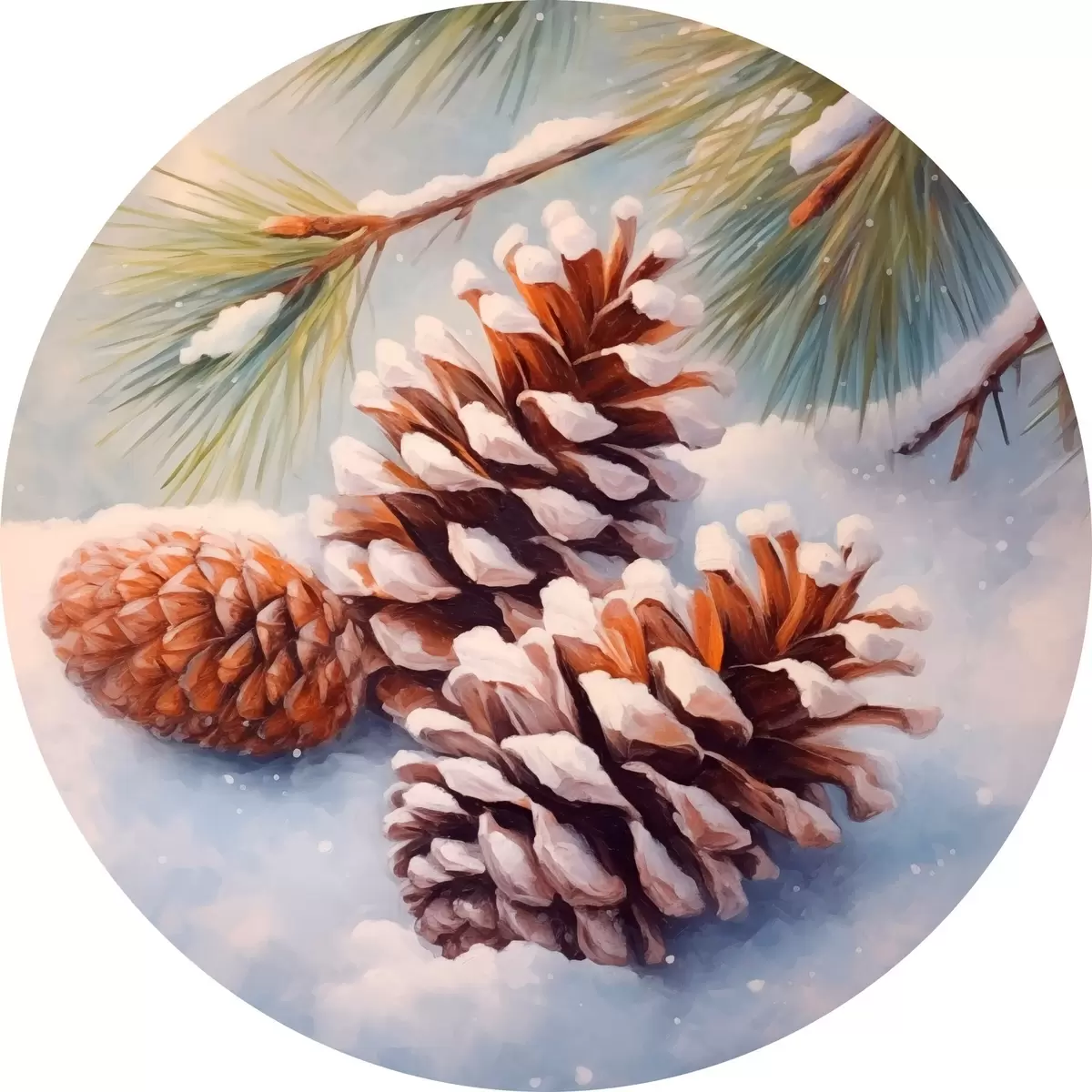 Picturi rotunde Conuri și ramuri de pin acoperite de zăpadă Nr r46631