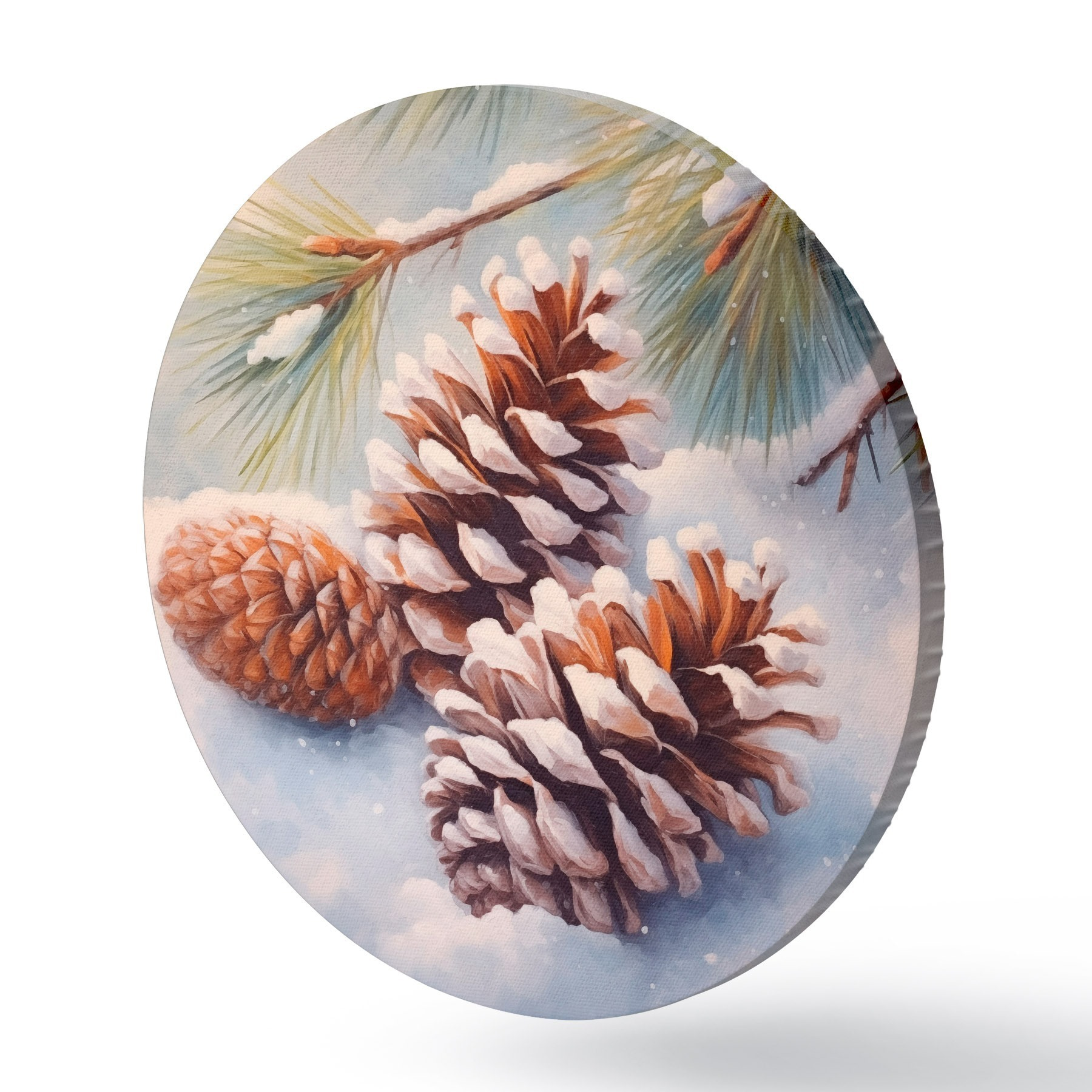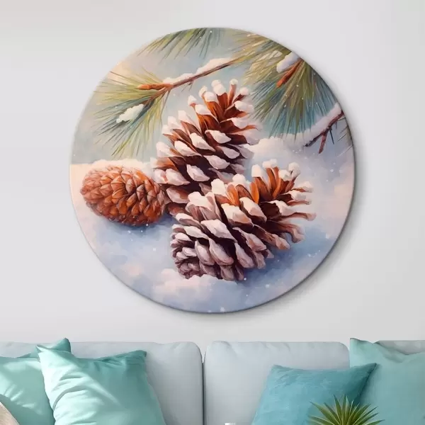 Picturi rotunde Conuri și ramuri de pin acoperite de zăpadă r46631