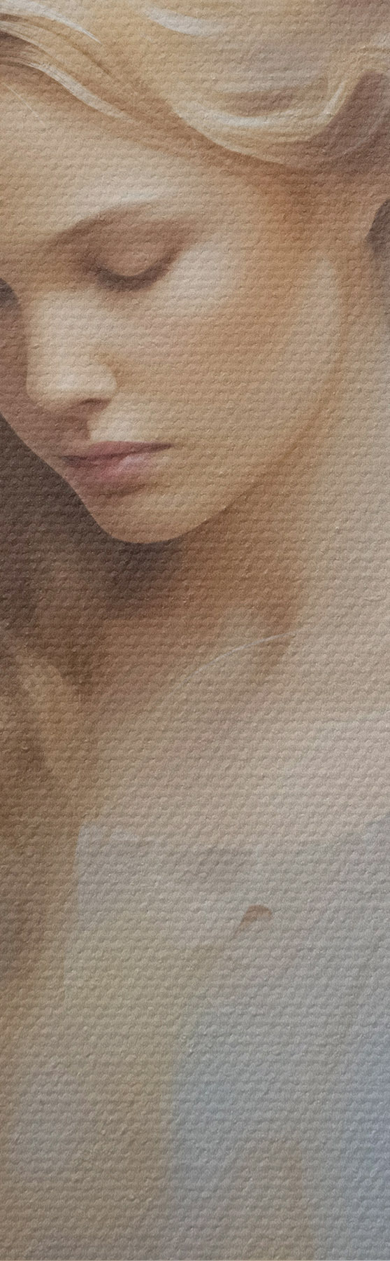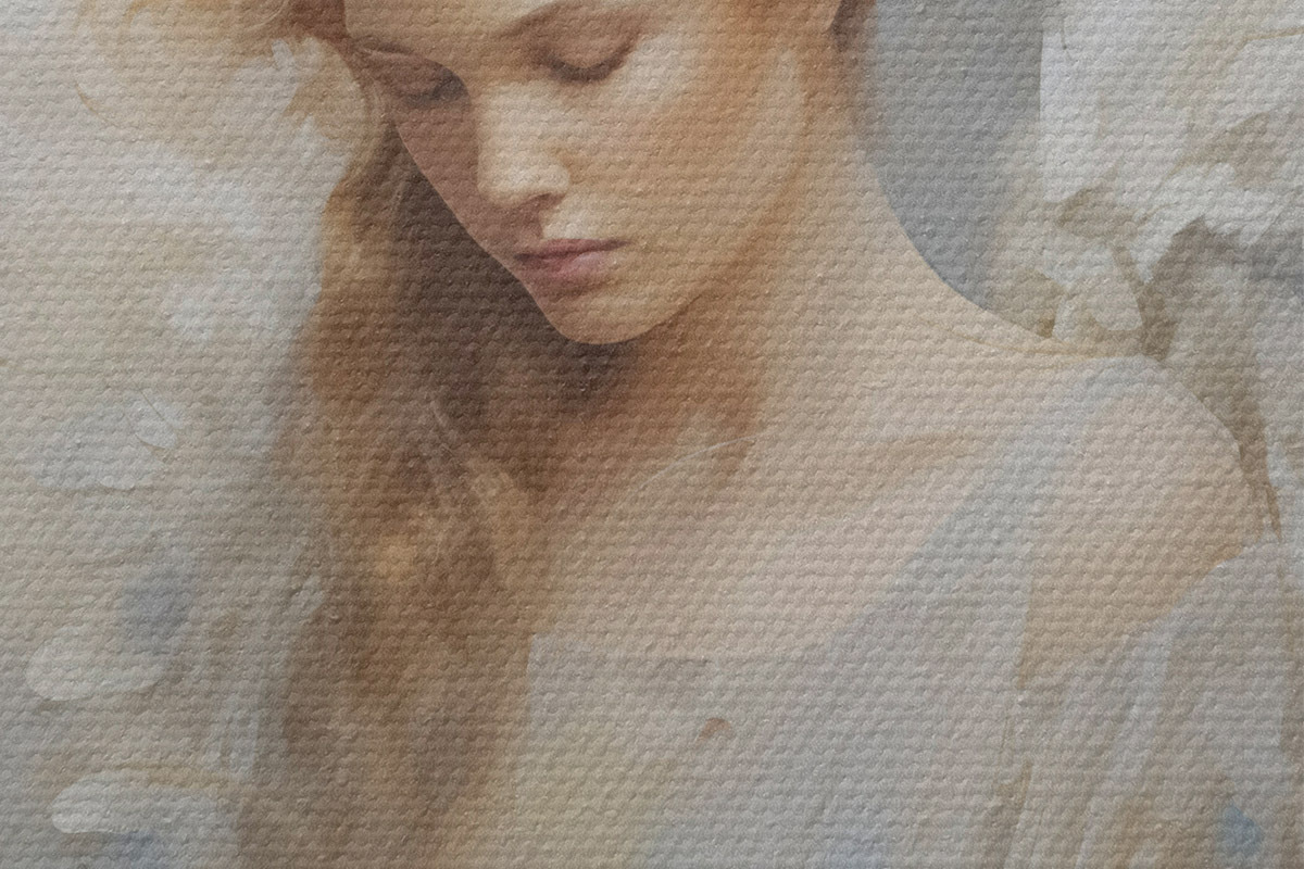 Țesătura fină a firelor de pe această pânză seamănă cu suprafața pânzelor artiștilor profesioniști.