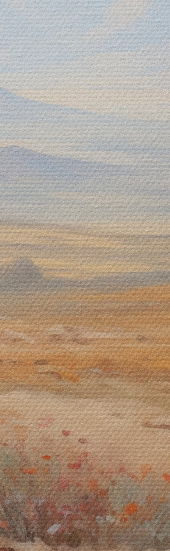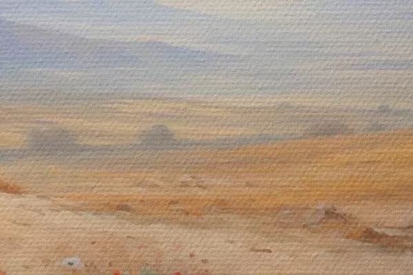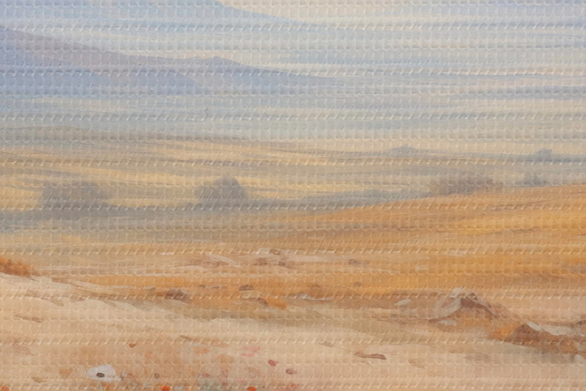 Țesătura fină a firelor de pe această pânză seamănă cu suprafața pânzelor artiștilor profesioniști.