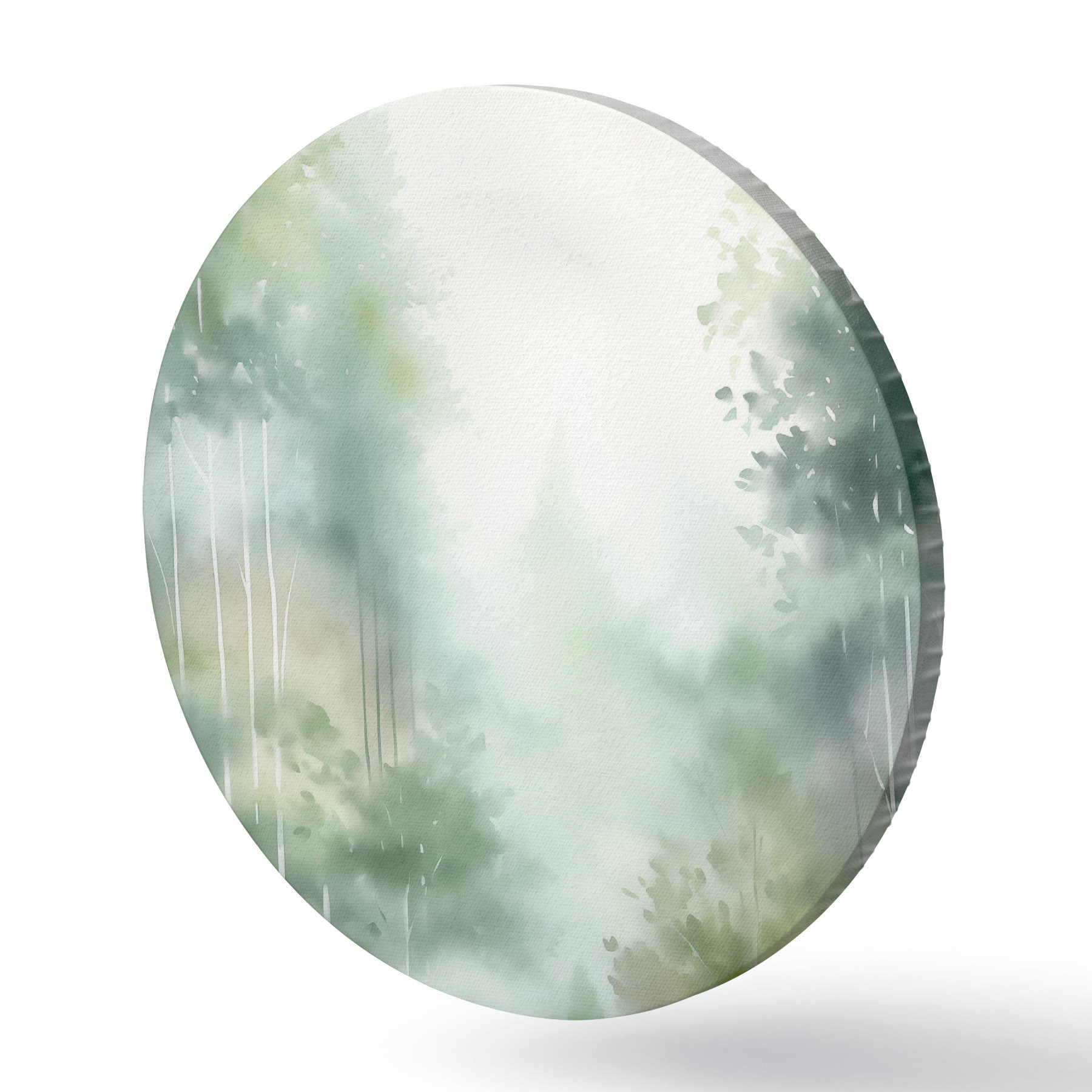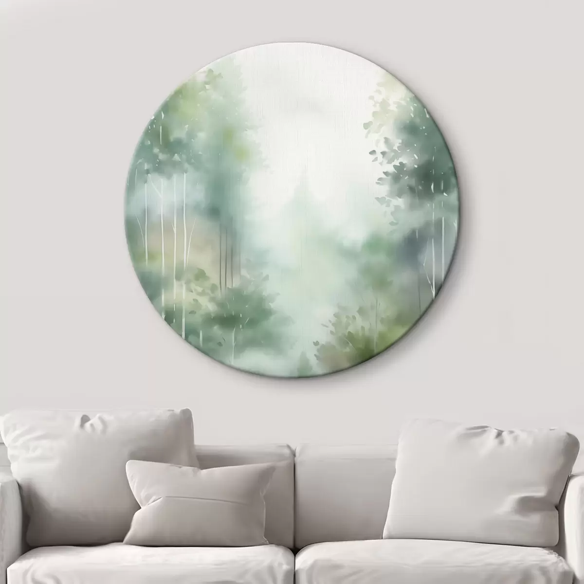 Picturi rotunde Imitatie de pictura in acuarela reprezentand o padure abstracta cu copaci inalti si frunziș verde, culori delicate si discrete r46689