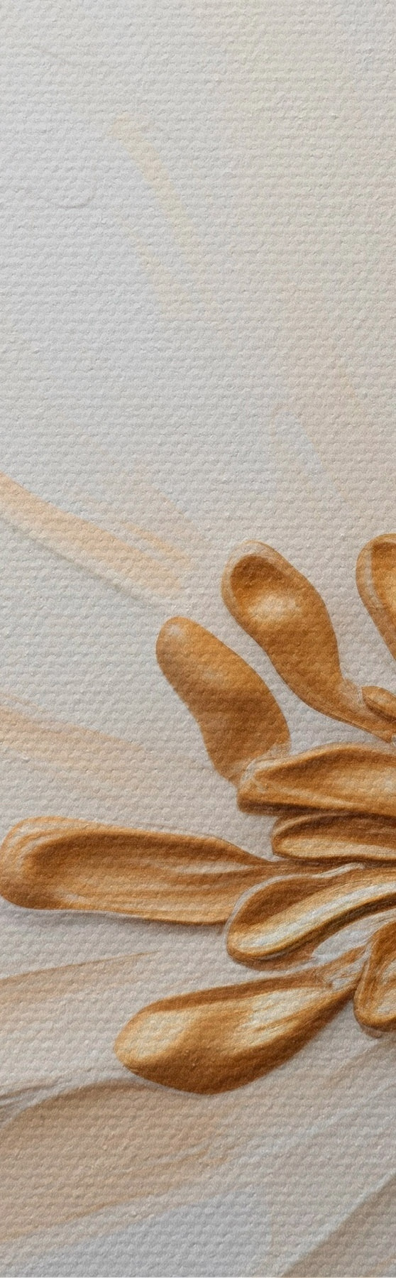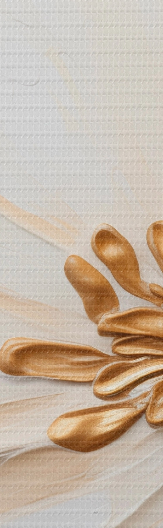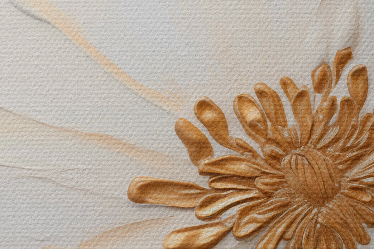 Picturi rotunde Floare albă cu petale delicate, imitație de pensule groase, pe un fundal texturat de culoare portocaliu deschis. Nr r46691
