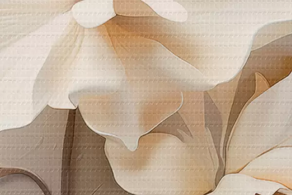 Picturi rotunde Flori albe, petale cu umbre delicate, fundal bej deschis, compoziție elegantă, stil minimalist Nr r46700