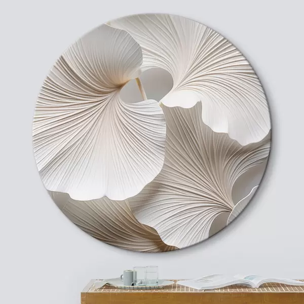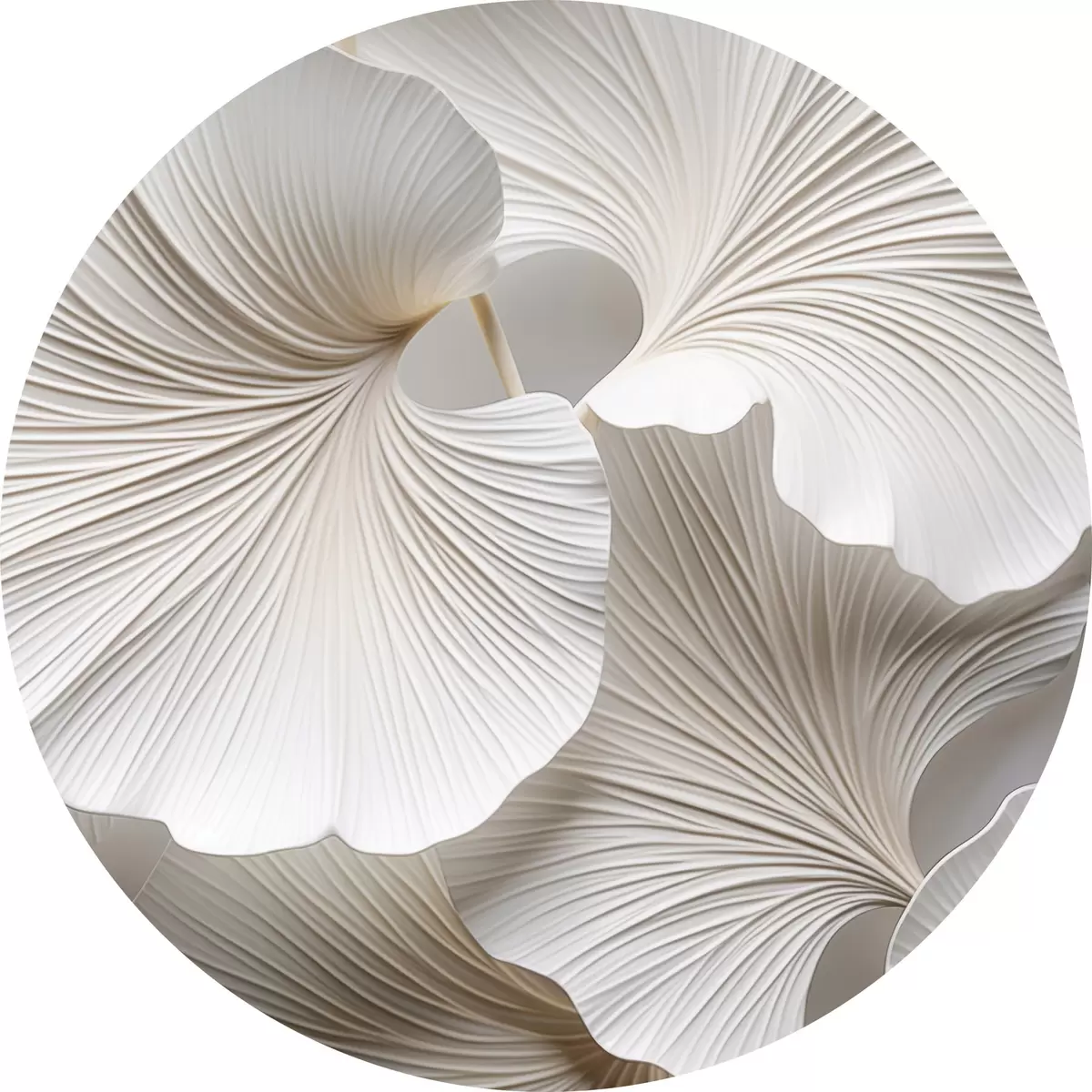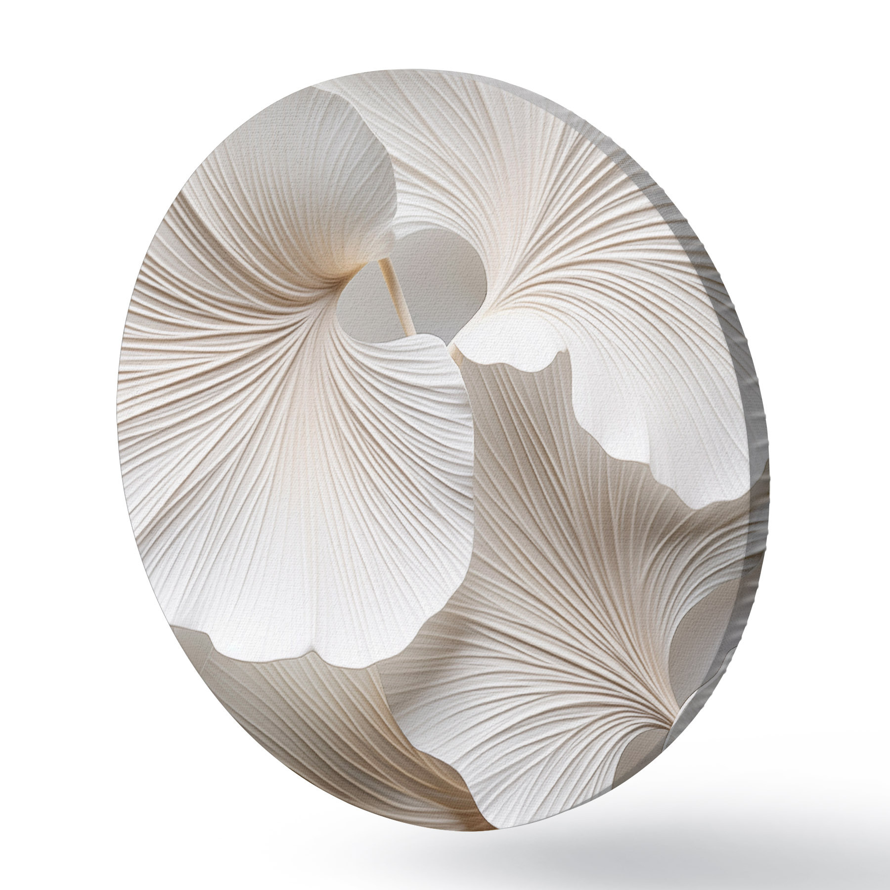 Picturi rotunde Frunze albe de ginkgo biloba cu nervuri detaliate, iluminare difuză, textură elegantă și design minimalist Nr r46705