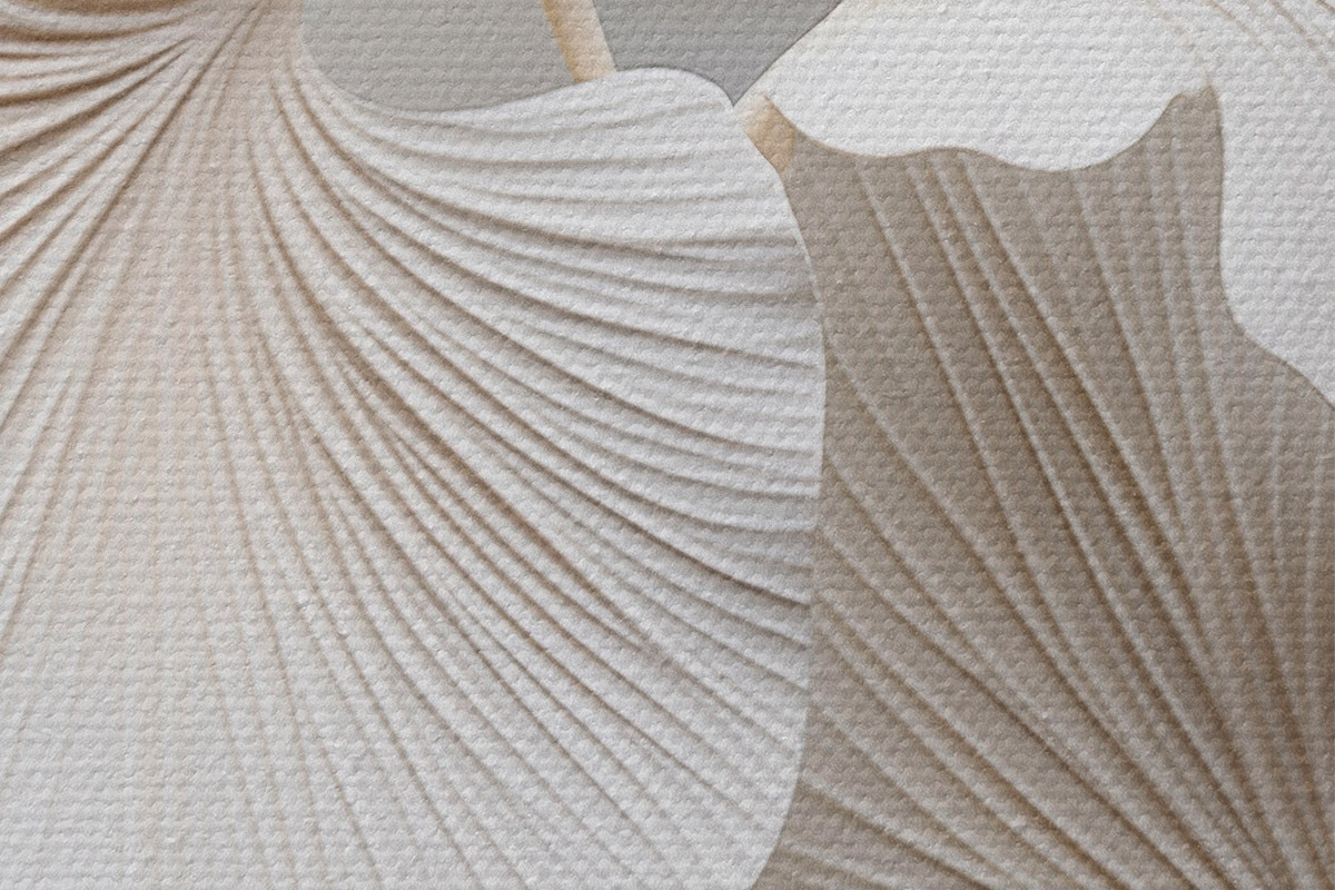 Picturi rotunde Frunze albe de ginkgo biloba cu nervuri detaliate, iluminare difuză, textură elegantă și design minimalist r46705