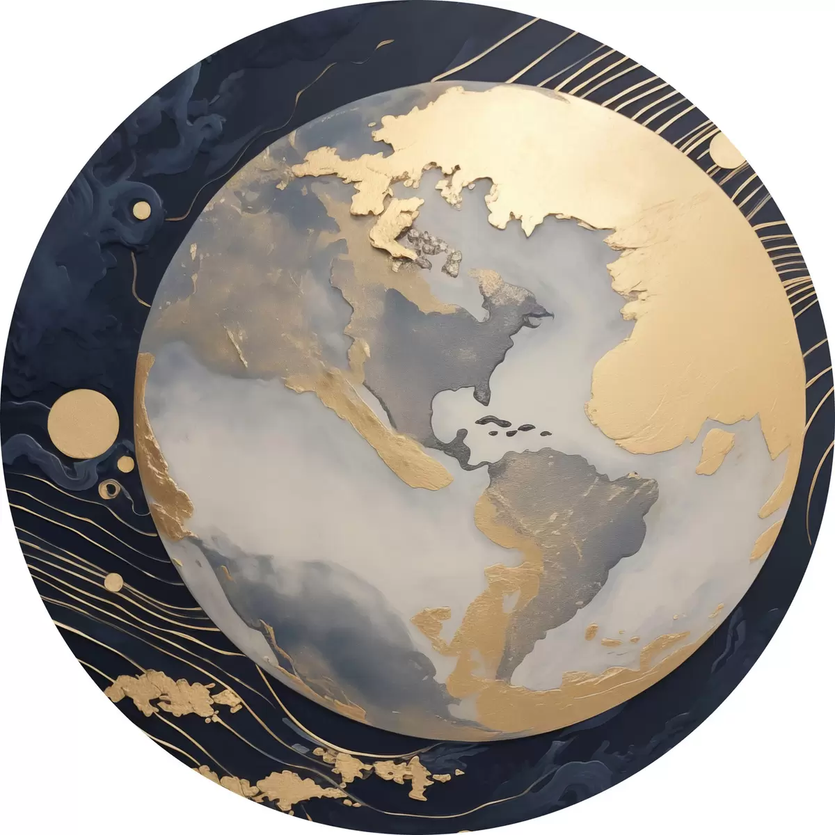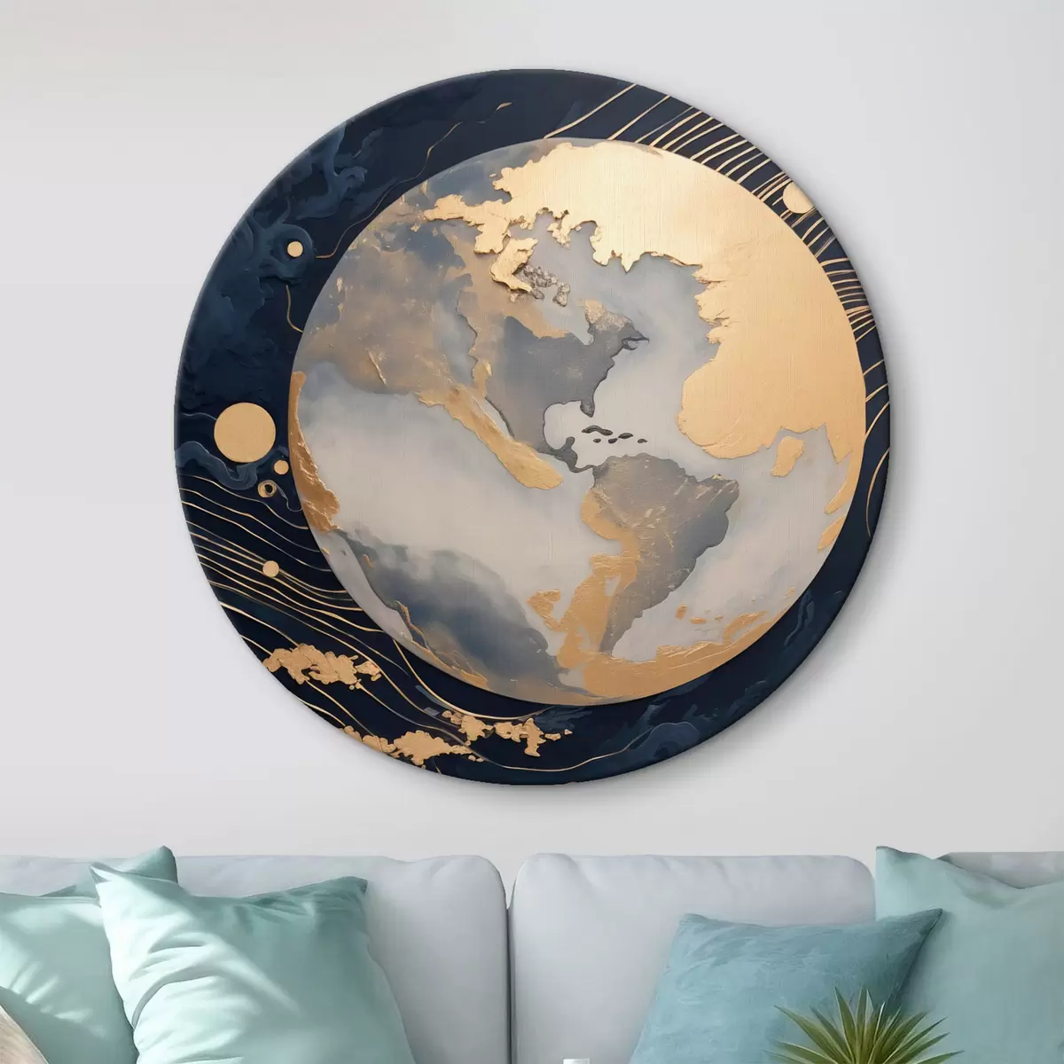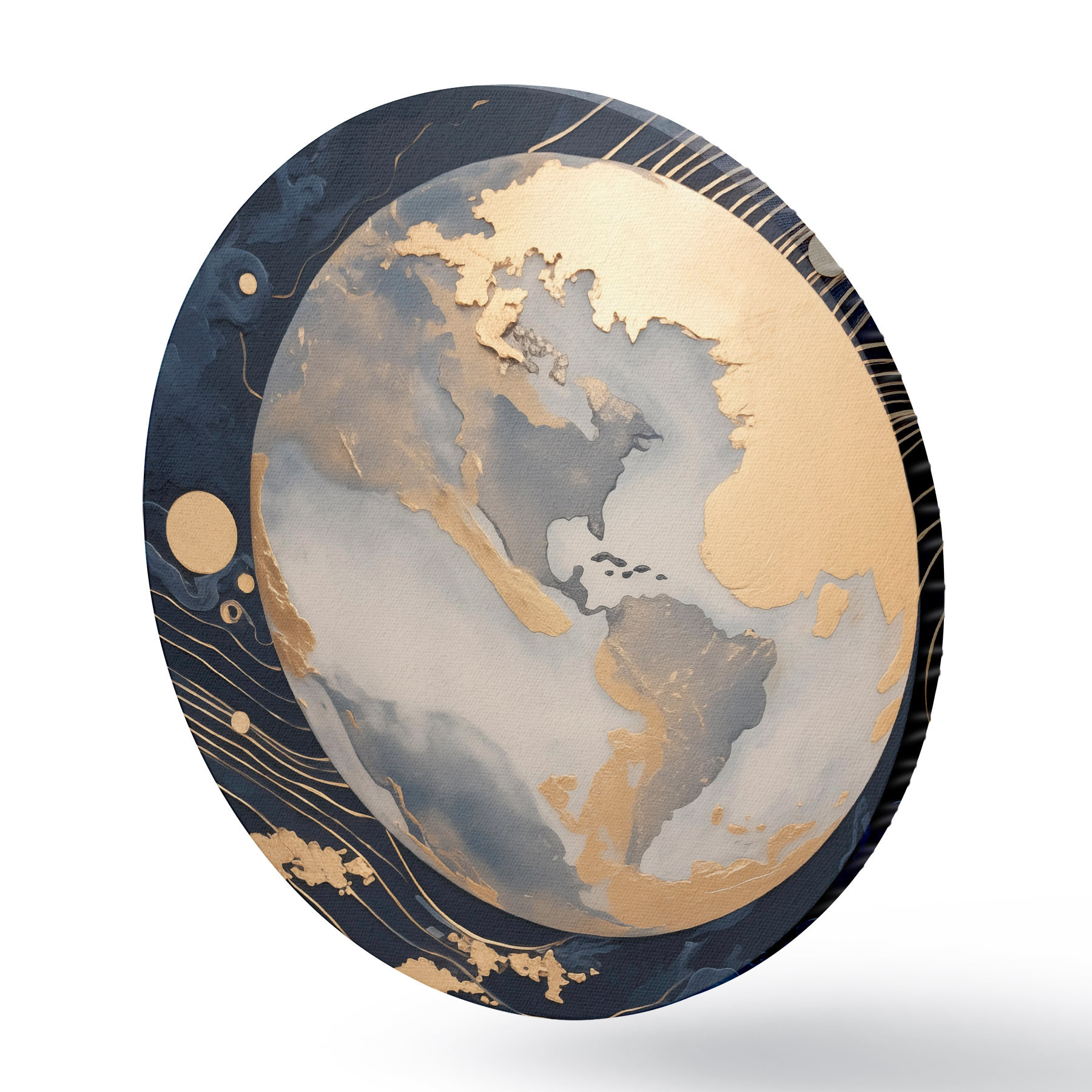 Picturi rotunde Planetă decorativă texturată cu linii galbene pe fundal, puncte galbene pe fundal, fundal întunecat Nr r46708