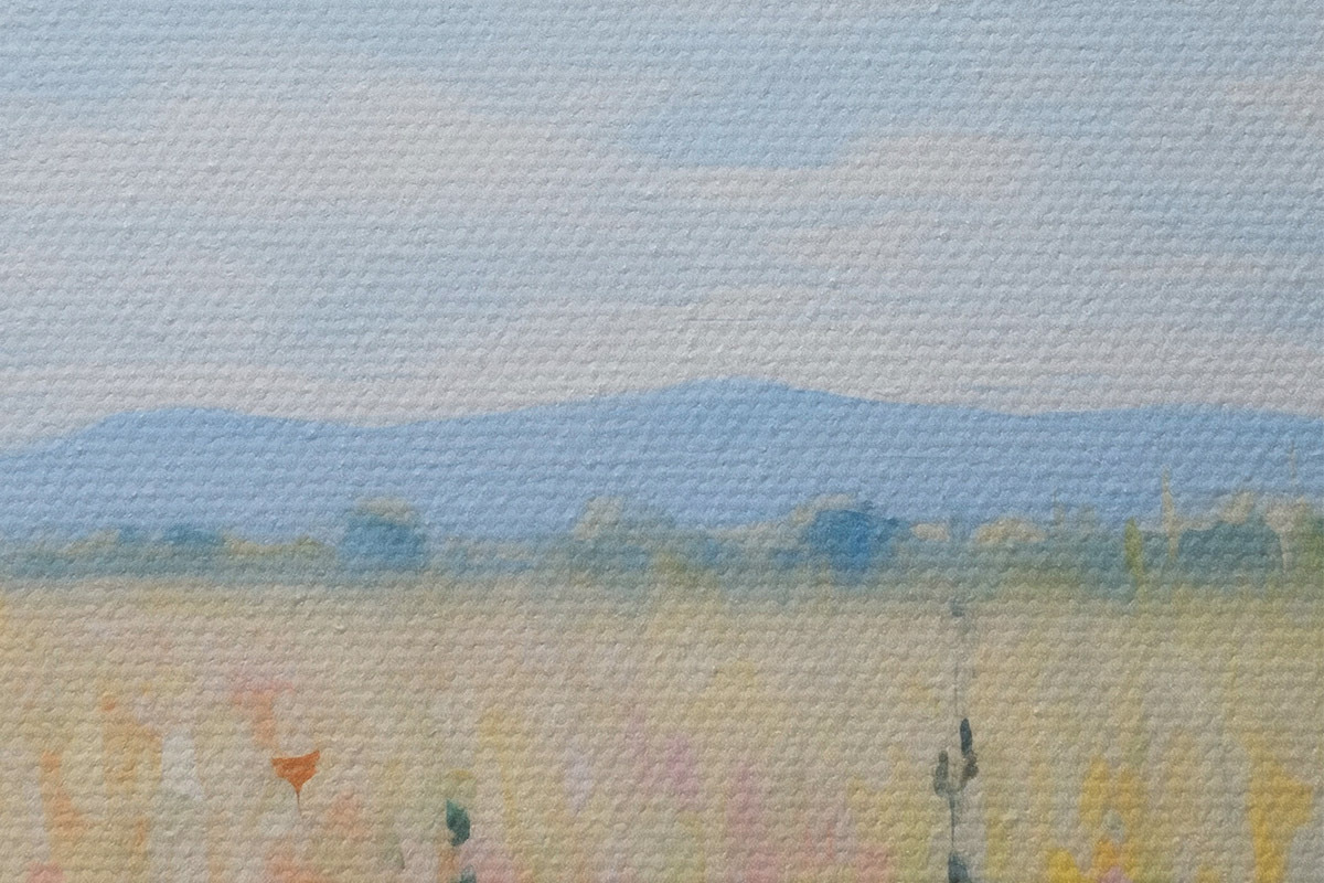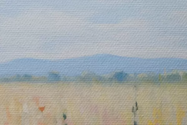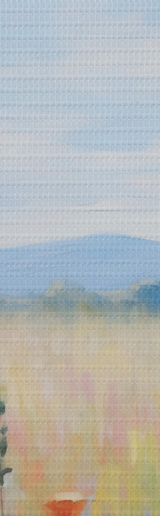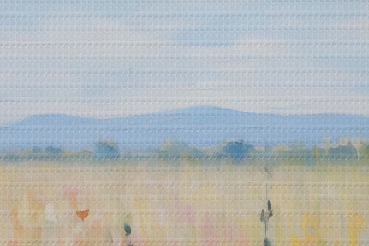 Țesătura fină a firelor de pe această pânză seamănă cu suprafața pânzelor artiștilor profesioniști.