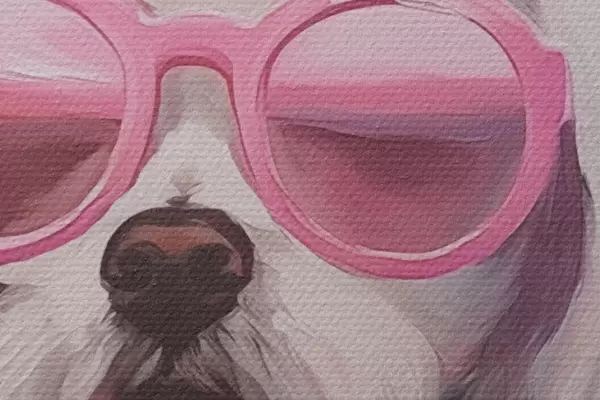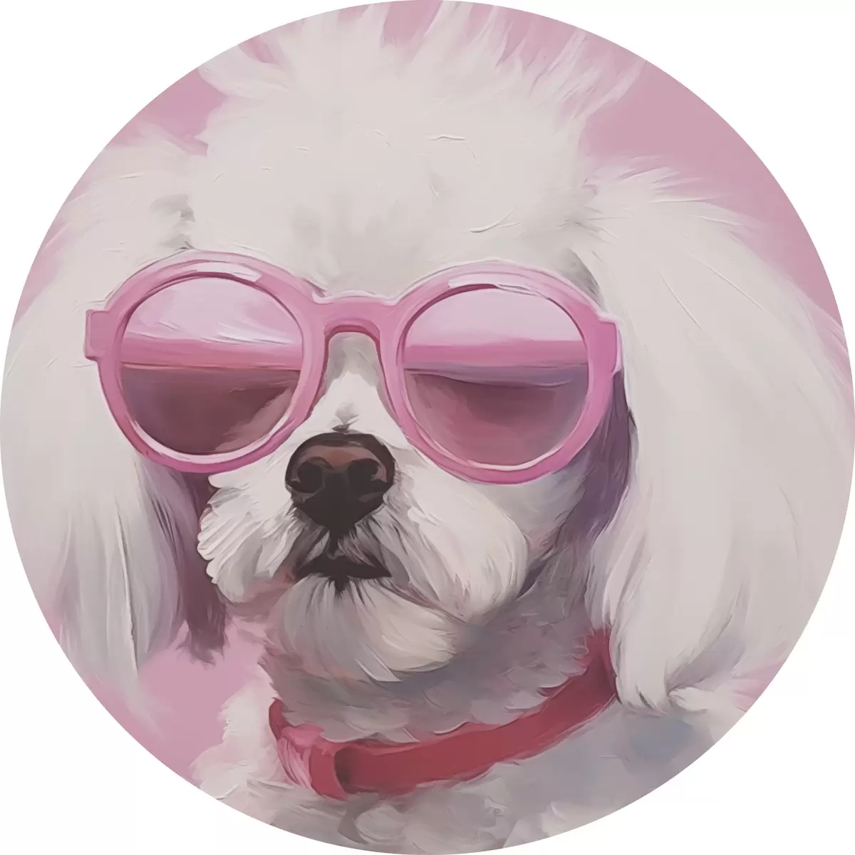 Picturi rotunde Un câine mic care poartă ochelari este o imitație a picturii. Nr r46722
