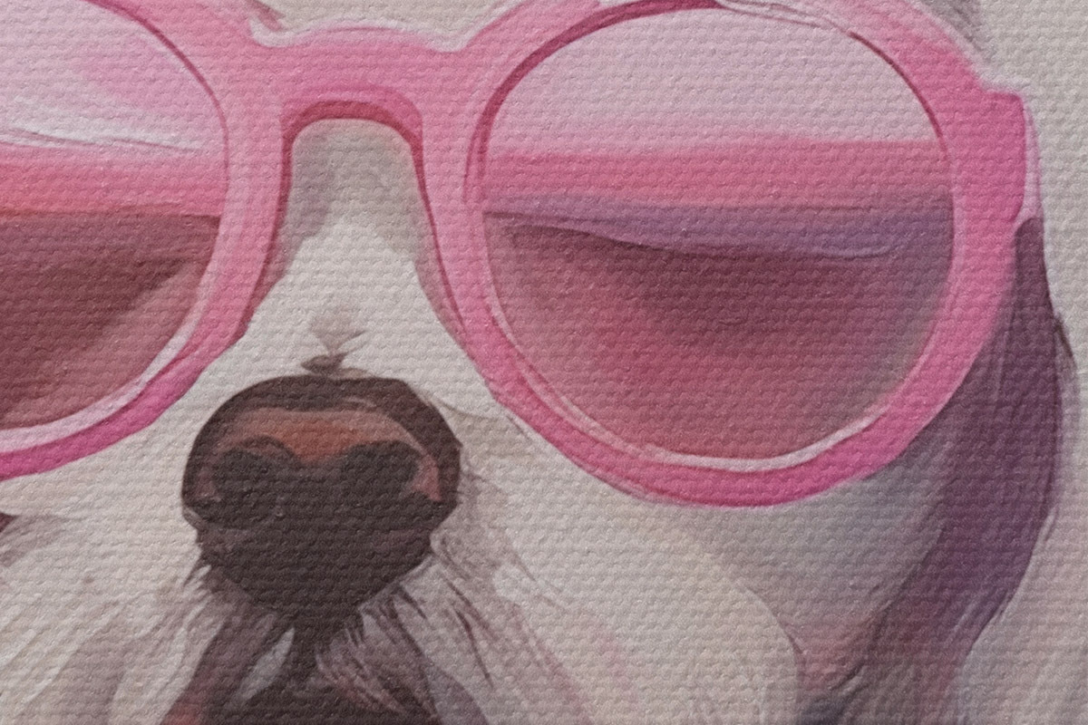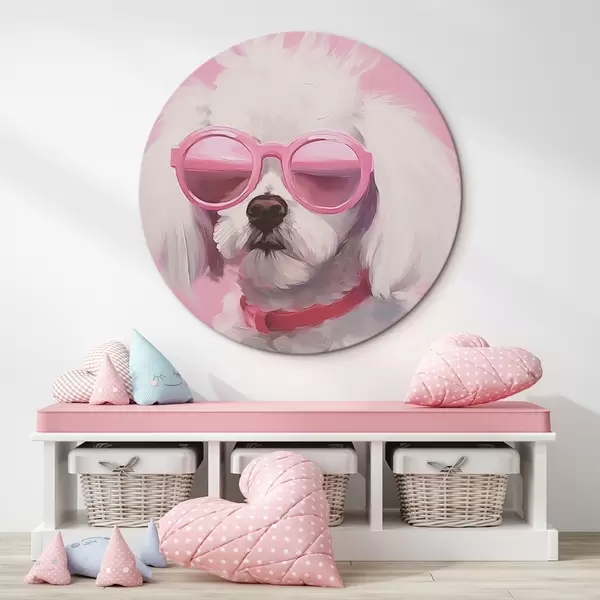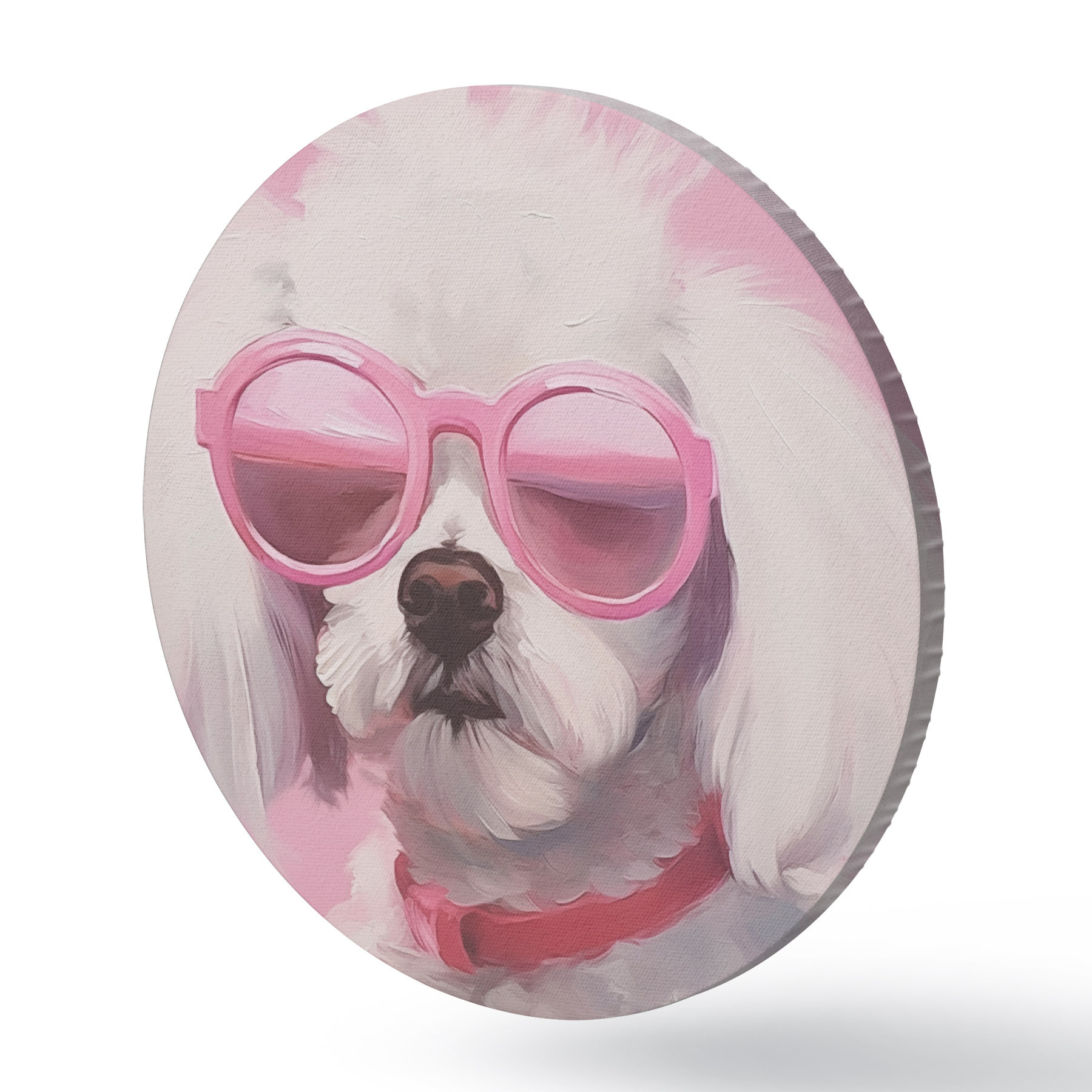 Picturi rotunde Un câine mic care poartă ochelari este o imitație a picturii. r46722