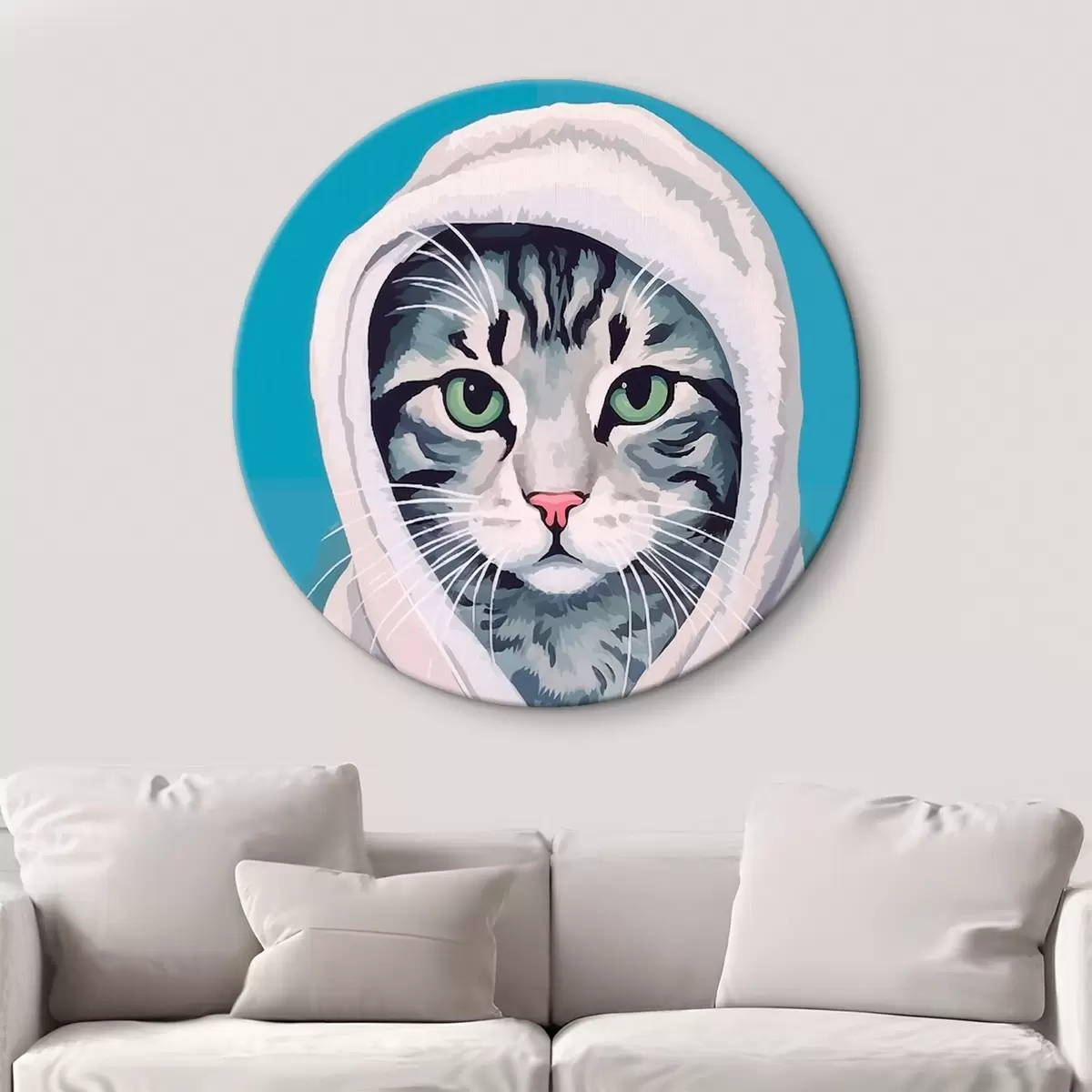 Picturi rotunde Pisică cu dungi într-un prosop alb Nr r46740