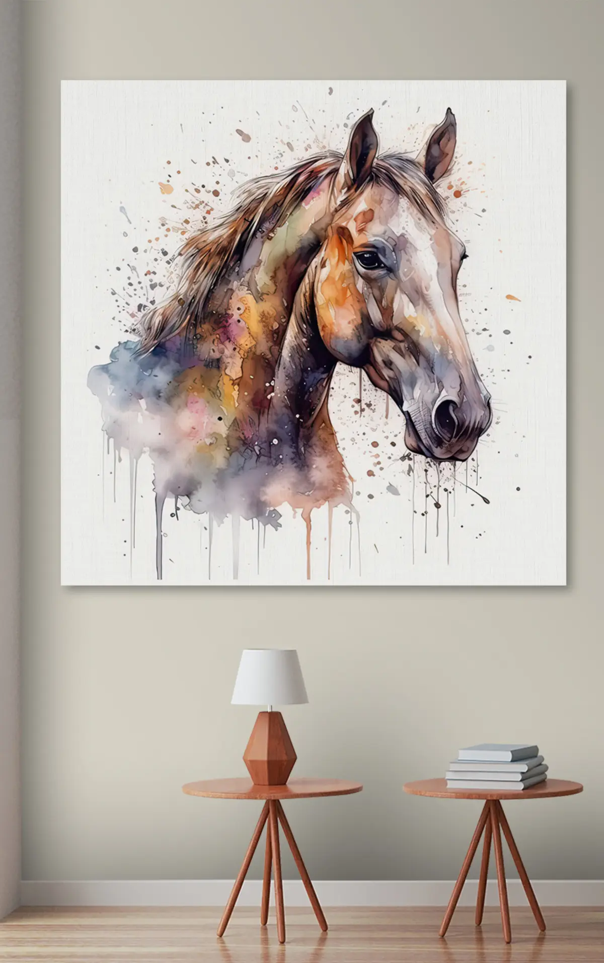 Pictură pe pânză Cal, cap și vopsea de artă Nr s32324