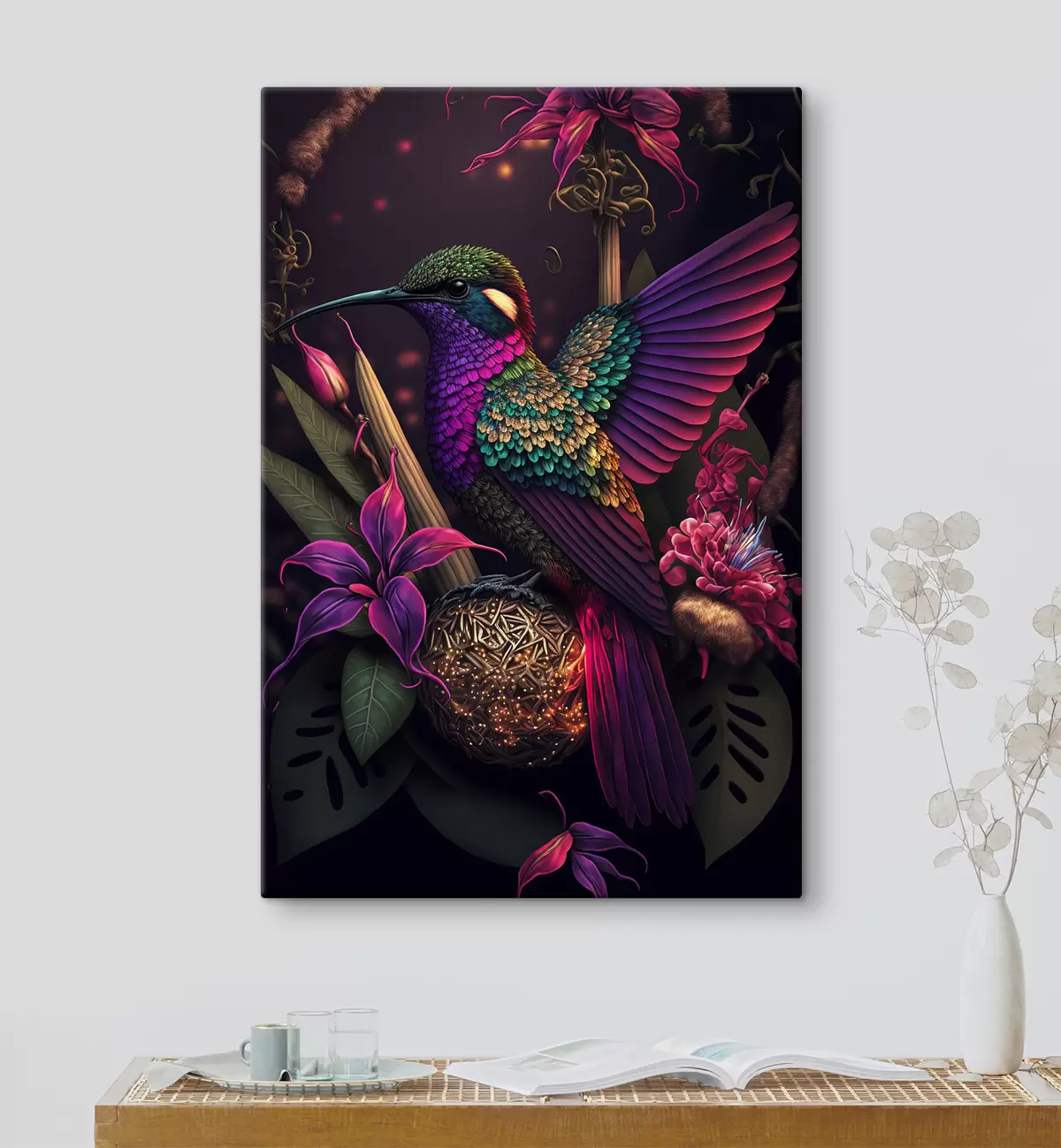 Pictură pe pânză Pasăre, violet și lumină Nr s33703