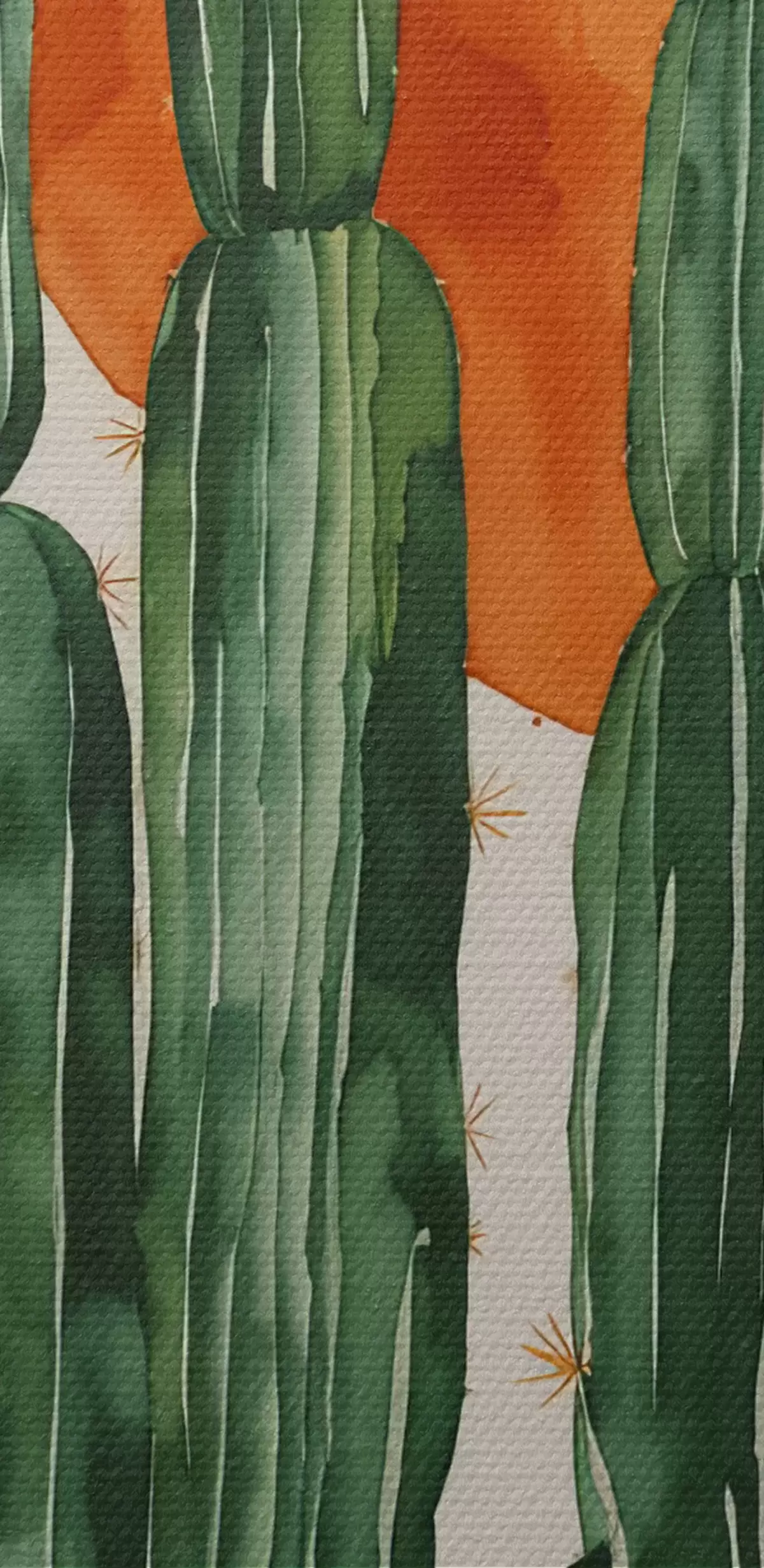 Pictură pe pânză Cactus în deșert împotriva soarelui în acuarelă Nr s36269