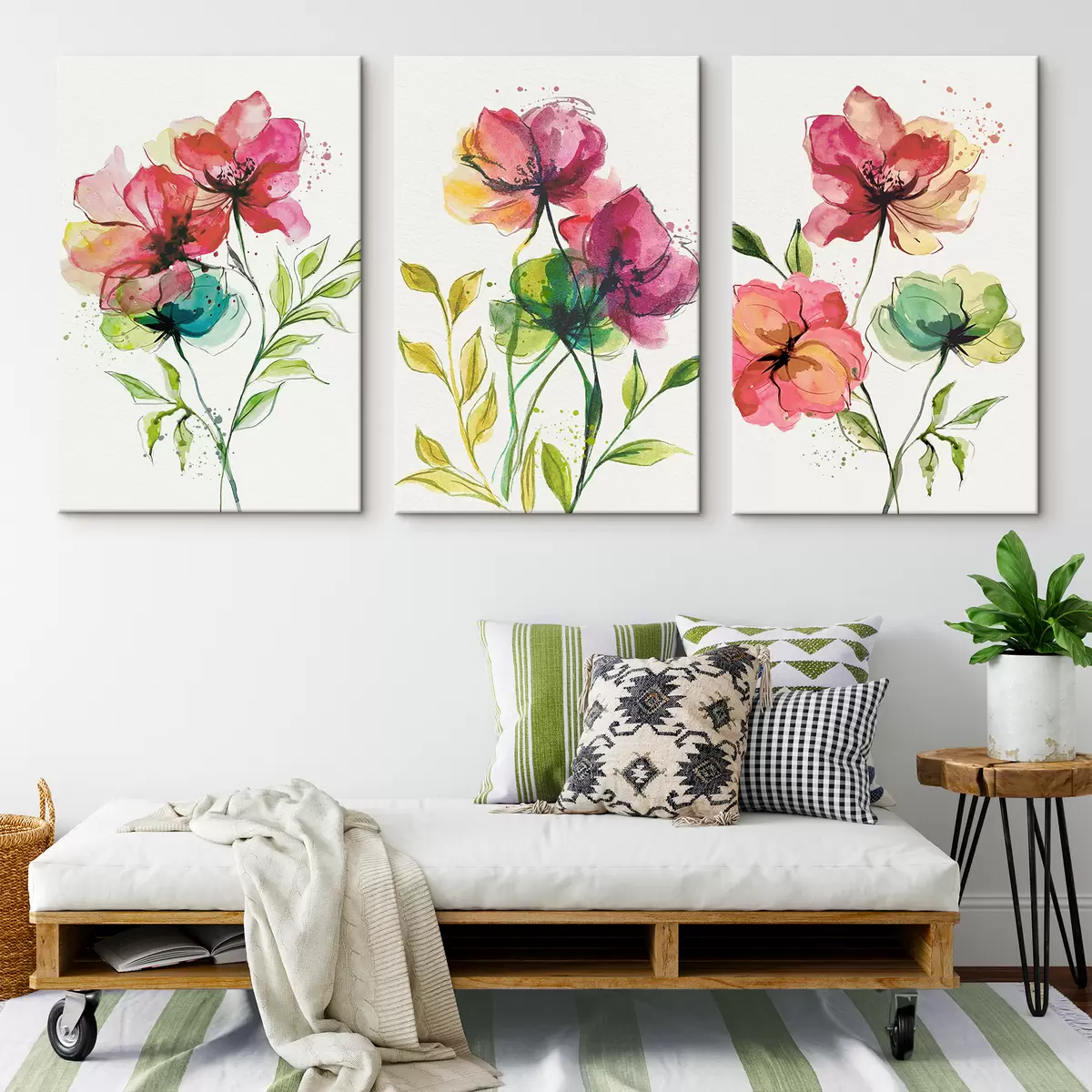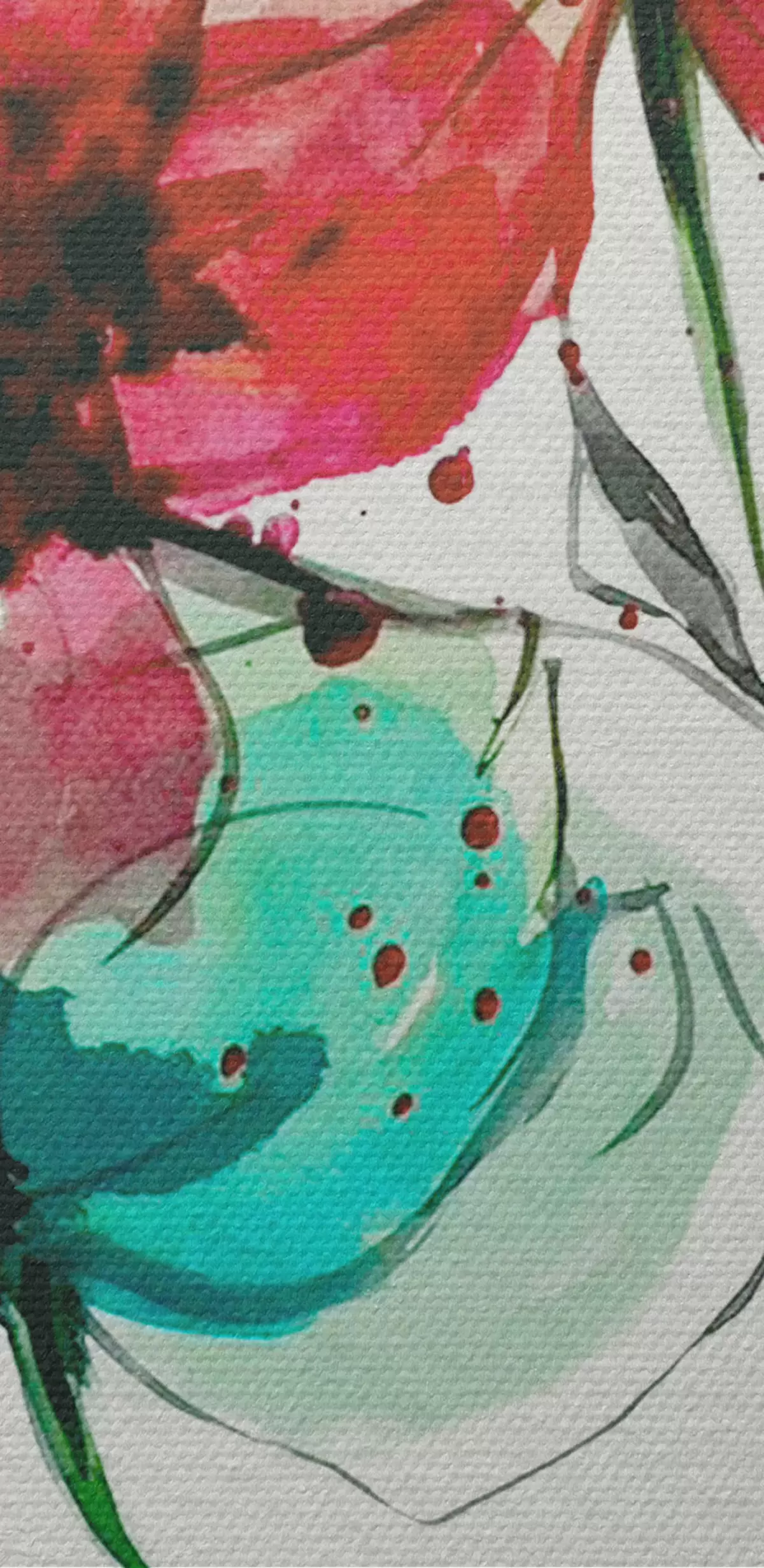Pictură pe pânză Flori delicate de acuarelă cu stropi de vopsea Nr m00340
