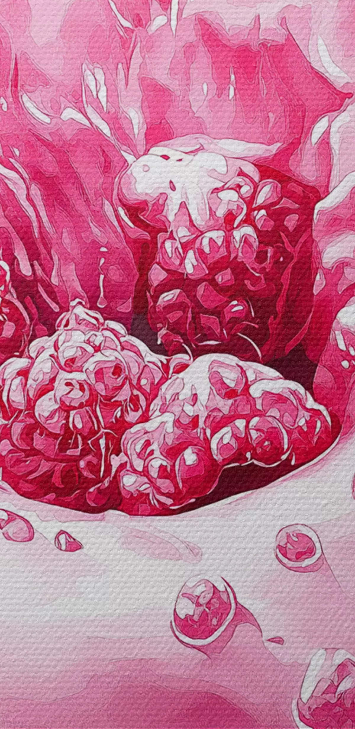 Pictură pe pânză Gogoși delicioase în stil acuarelă cu zmeură, culori roz Nr m00412