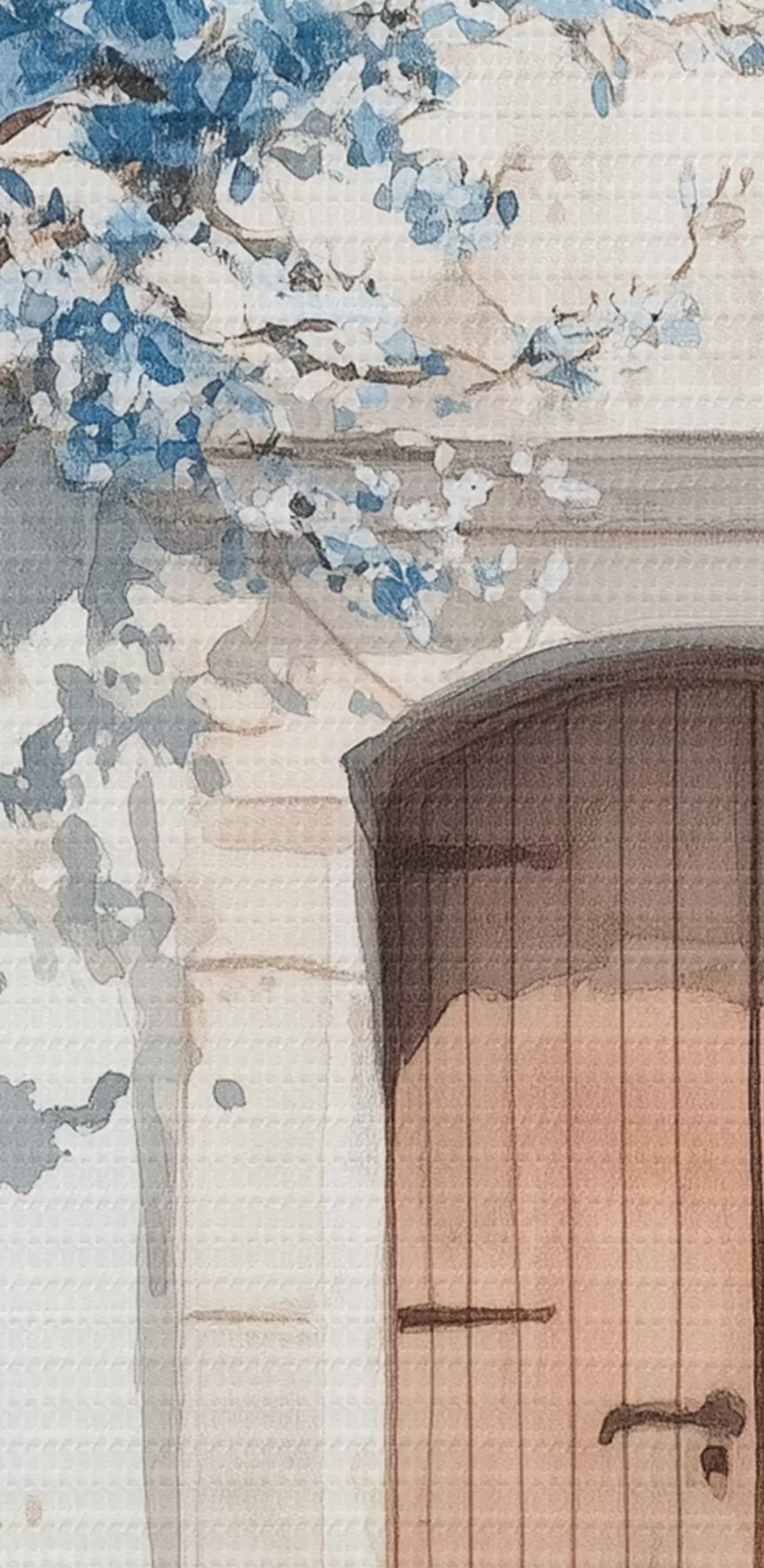 Pictură pe pânză Case albe grecești cu copaci înfloriți, mediteranean, desen în stil acuarelă Nr m00419