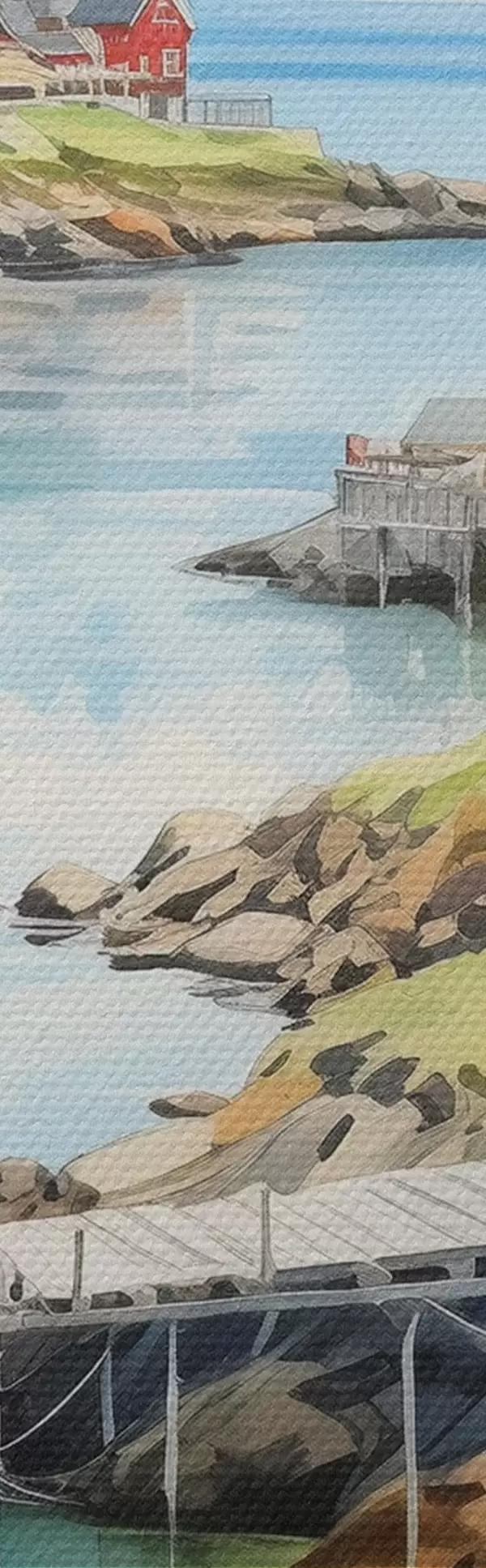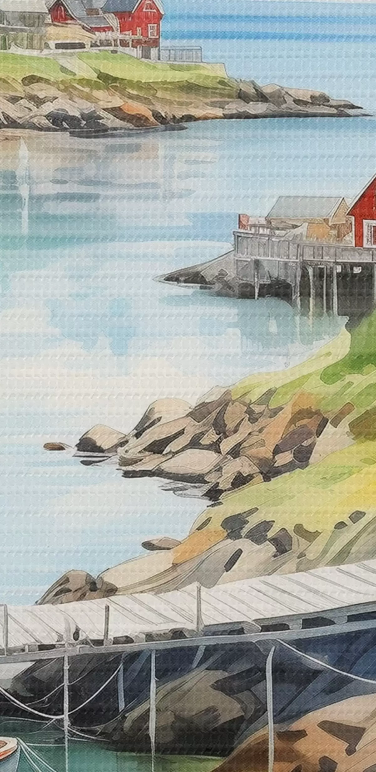 Pictură pe pânză Norvegia natură, Insulele Lofoten, peisaj de vară, case roșii, munți, bărci Nr m00421