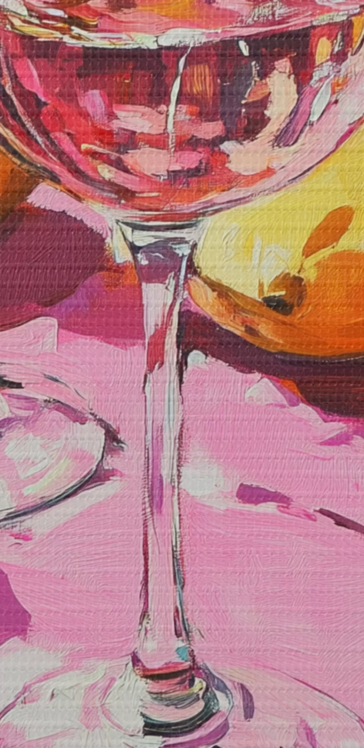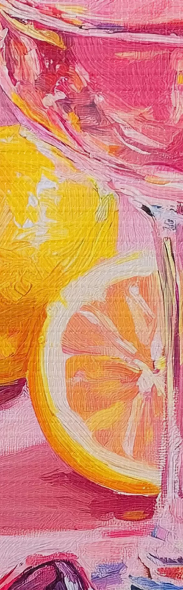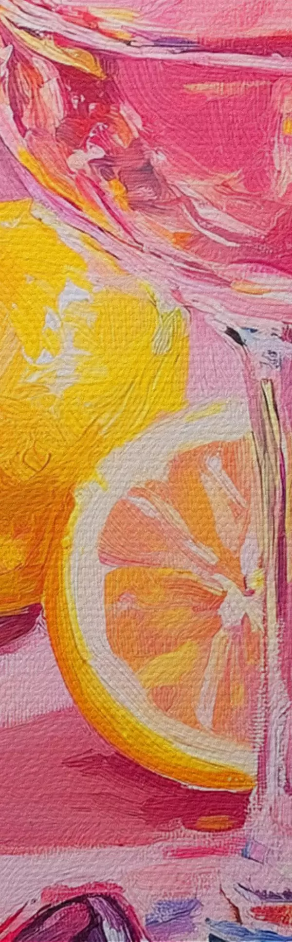 Pictură pe pânză Abstracție în stil ulei cu pahare de șampanie, lămâi și ochelari de soare, culori roz Nr m00444