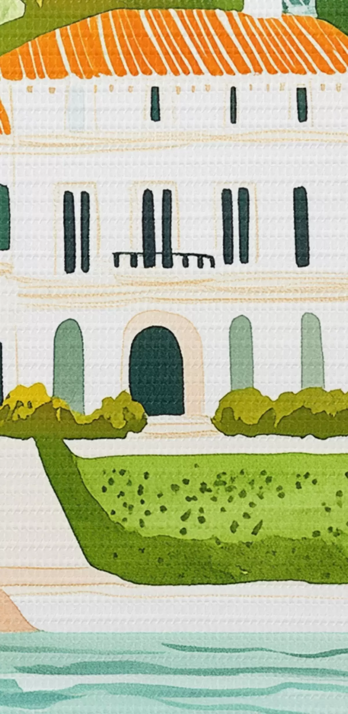 Pictură pe pânză Peisaje mediteraneene cu copaci și case, coasta mării, Spania Nr m00450
