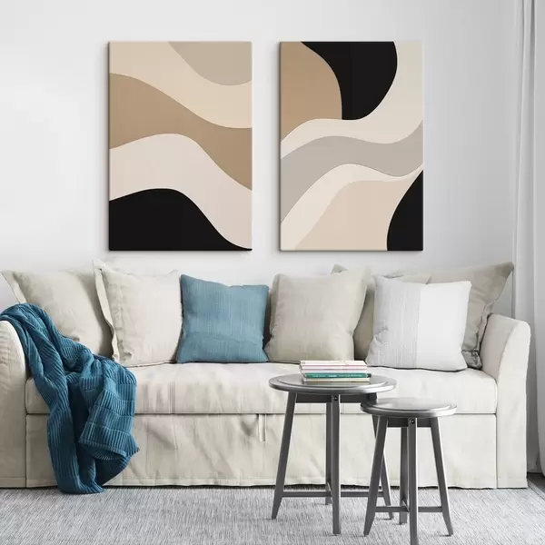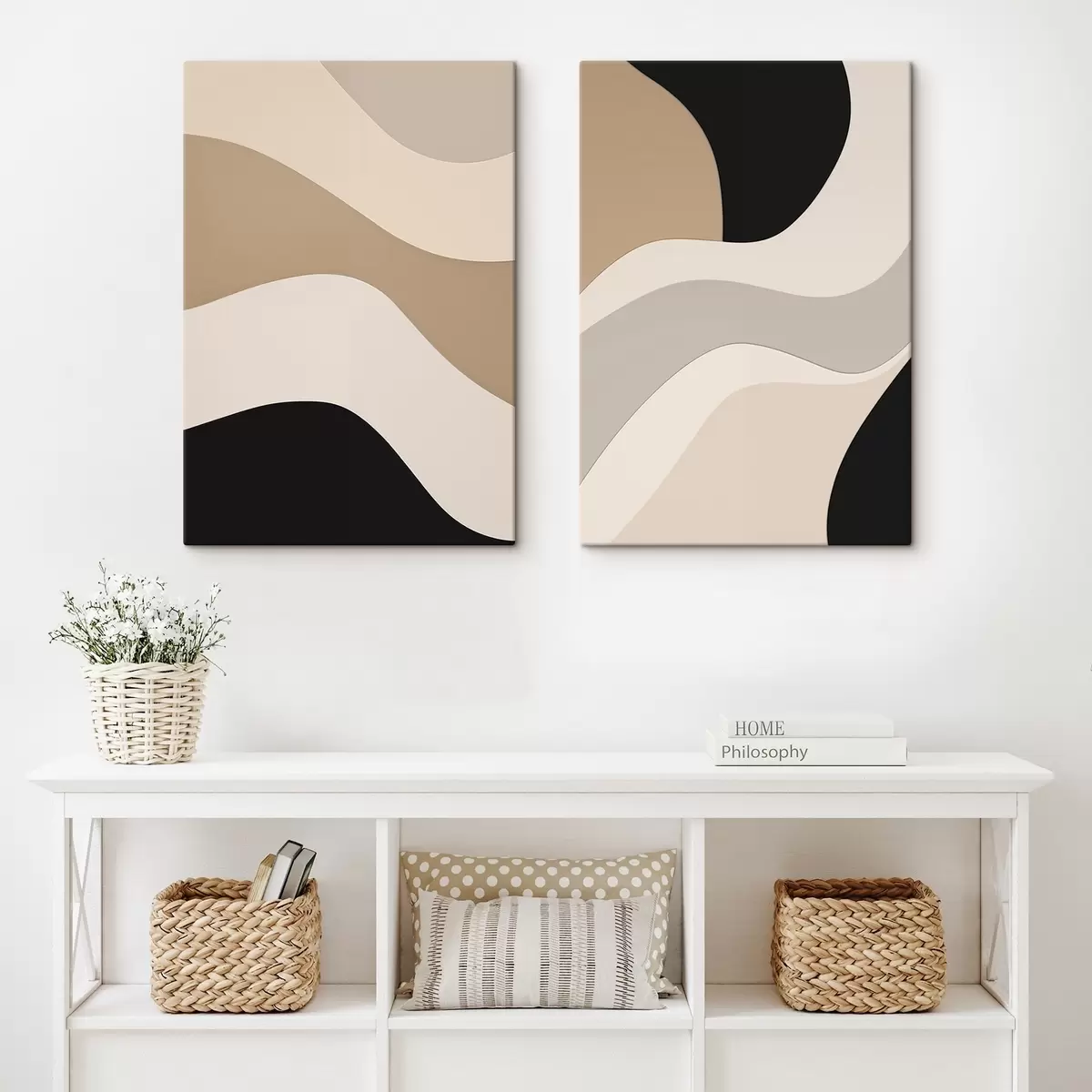 Pictură pe pânză Valuri abstracte în tonuri de bej și negru Nr m00460